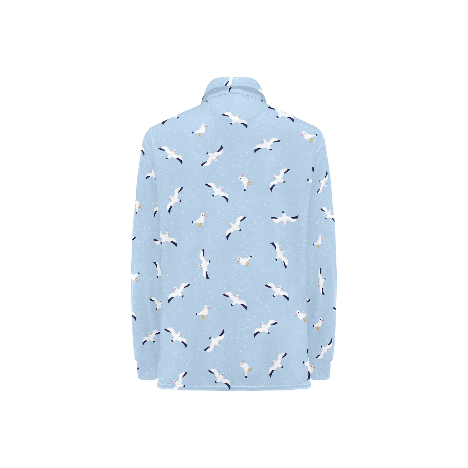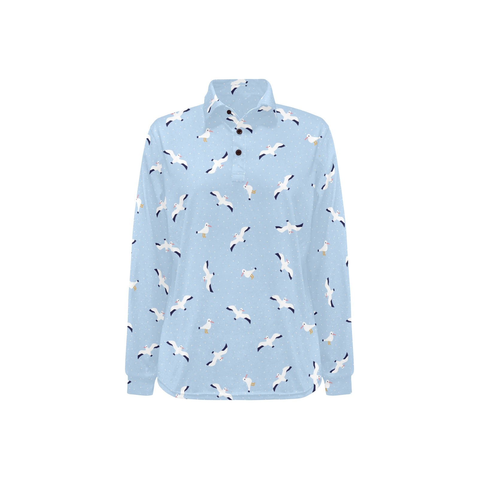 Seagull Pattern Print Design 02 Women's Long Sleeve Polo Shirt