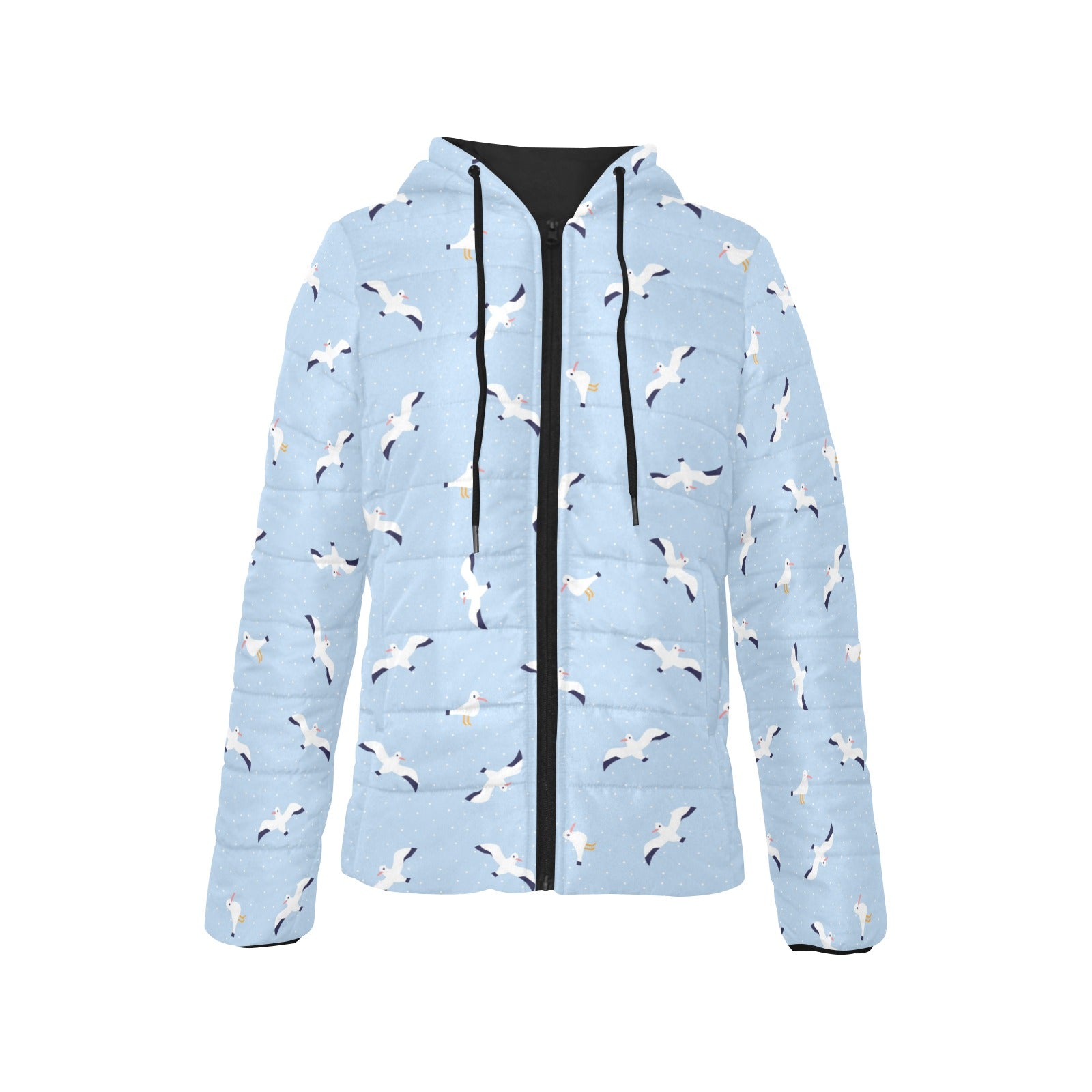 Seagull Pattern Print Design 02 Women's Padded Hooded Jacket