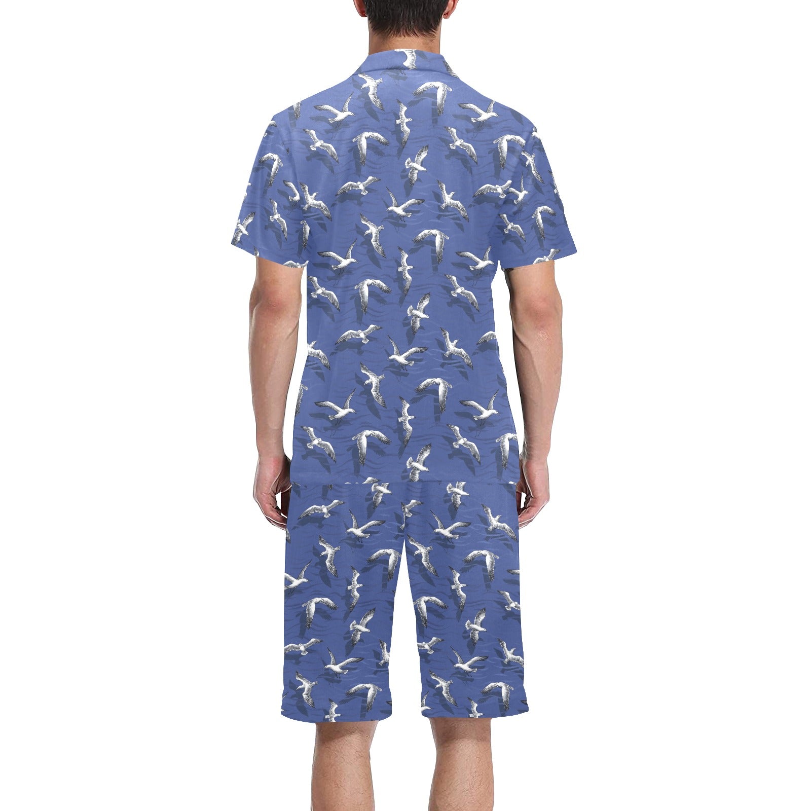 Seagull Pattern Print Design 03 Men's V-Neck Short Pajama Set