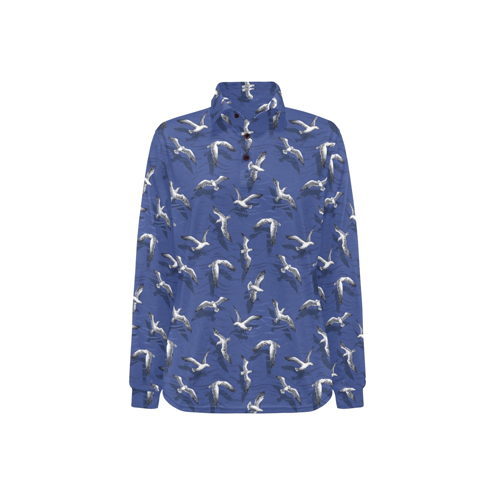 Seagull Pattern Print Design 03 Women's Long Sleeve Polo Shirt