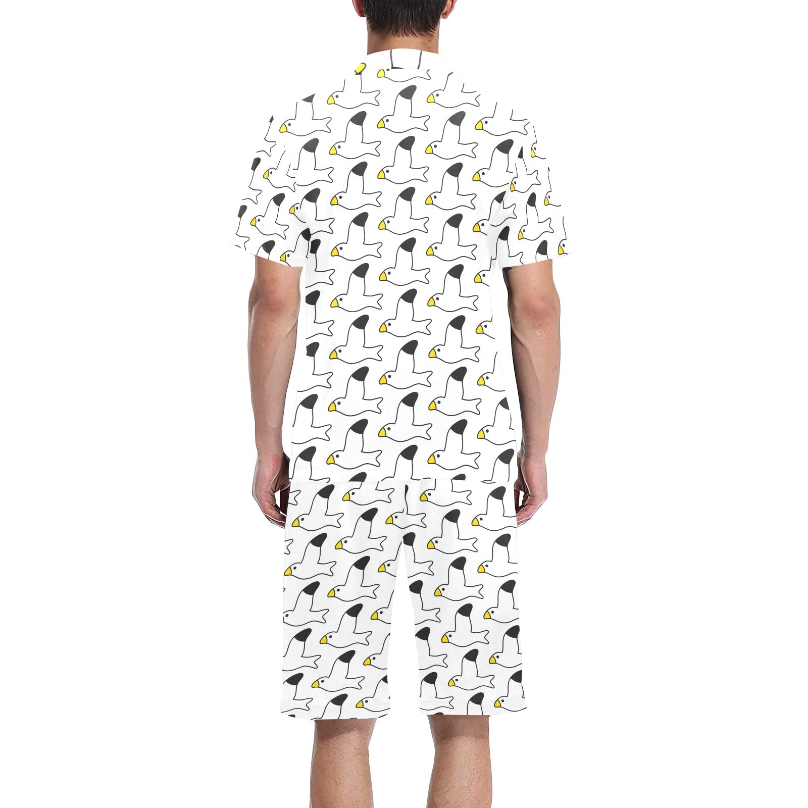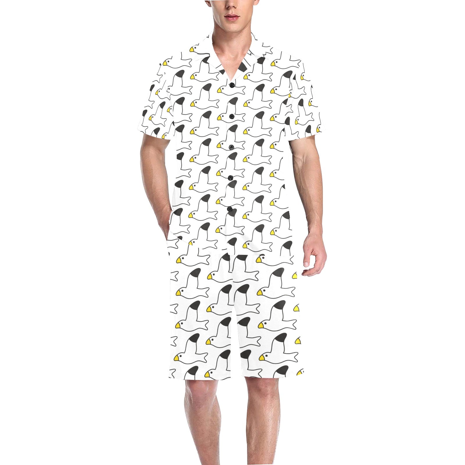 Seagull Pattern Print Design 05 Men's V-Neck Short Pajama Set