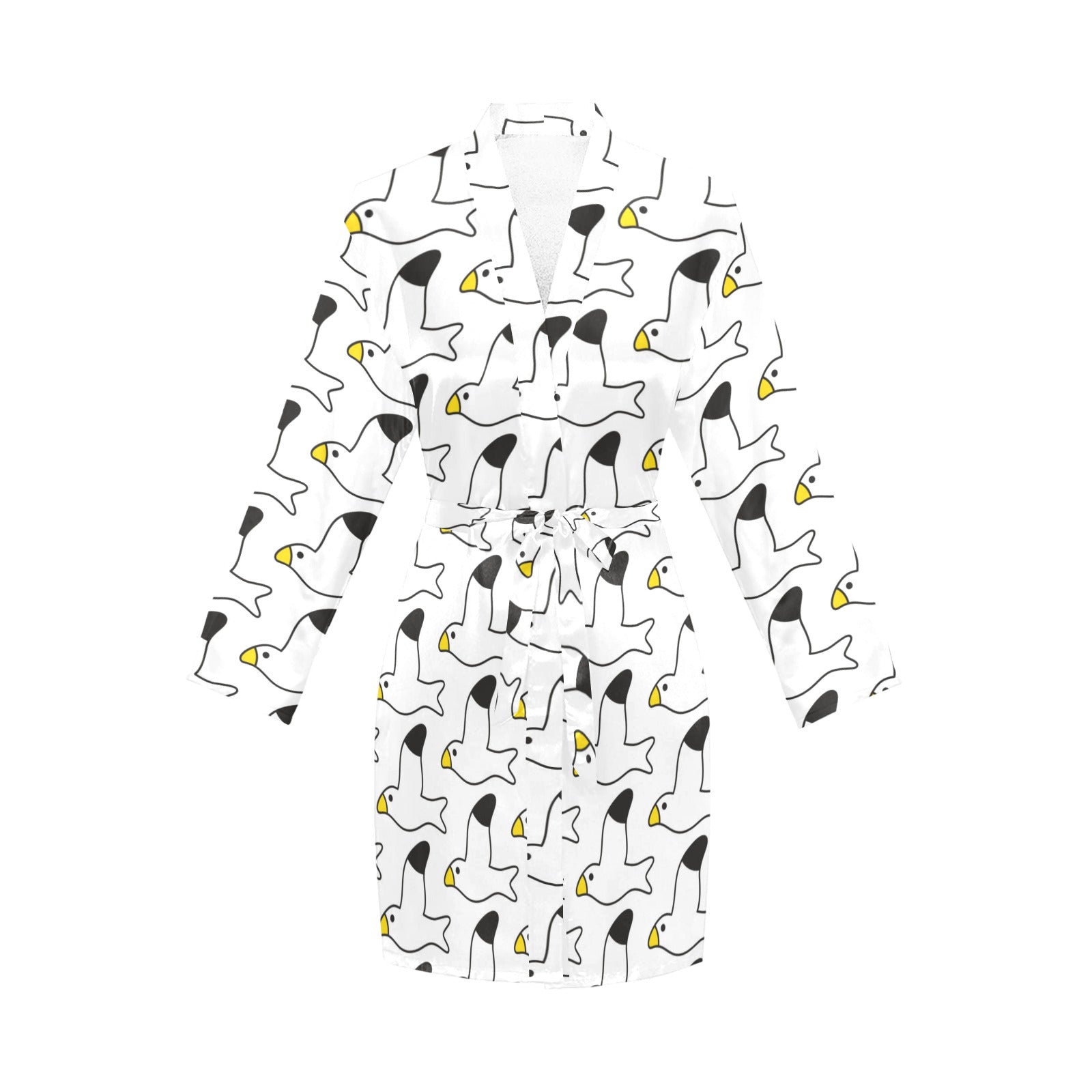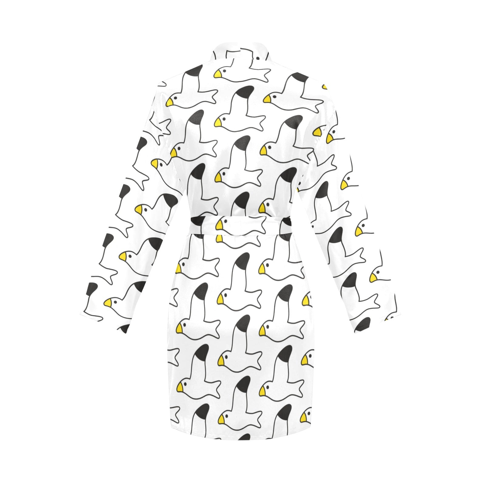 Seagull Pattern Print Design 05 Women's Long Sleeve Belted Night Robe