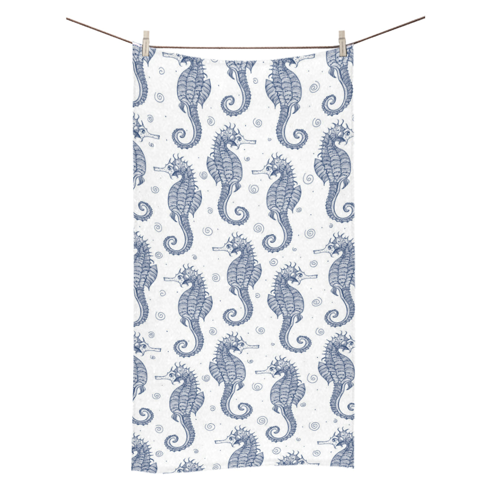 Seahorse pattern background Bath Towel 30"x56" is a uniqued design and limited item. It made to order, hand printed, and sewn with love in our factory.