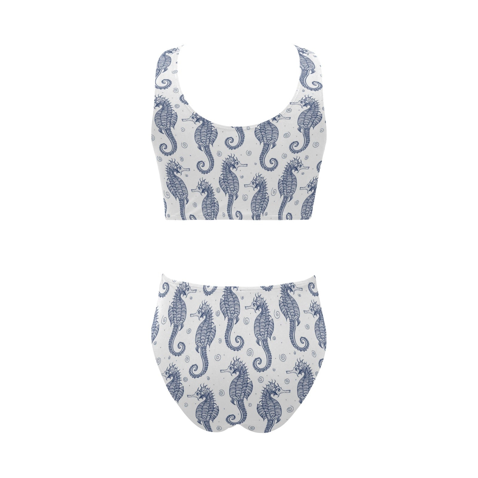 Seahorse pattern background Chest Bowknot High Waisted Bikini Swimsuit