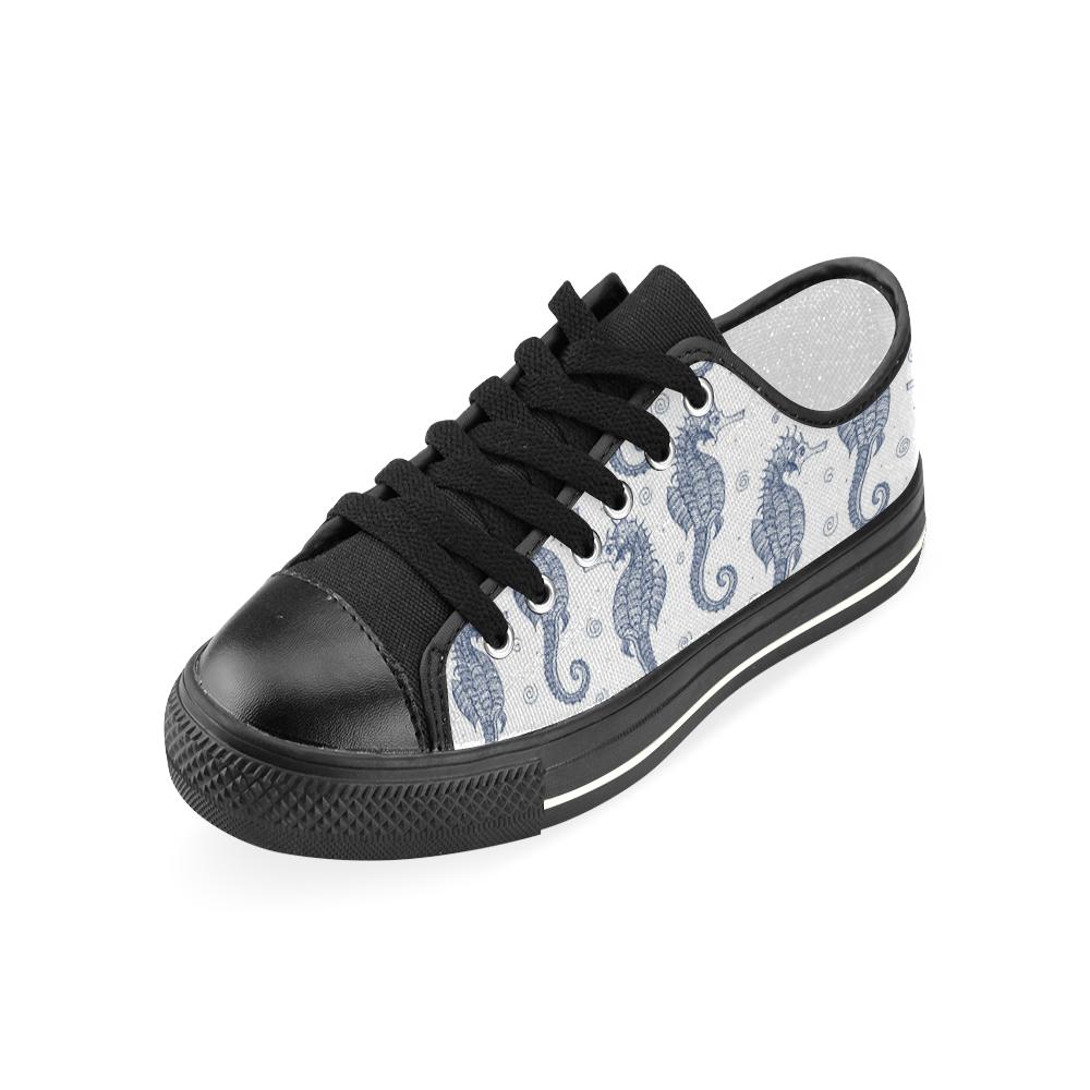 Seahorse pattern background Kids' Boys' Girls' Low Top Canvas Shoes Black