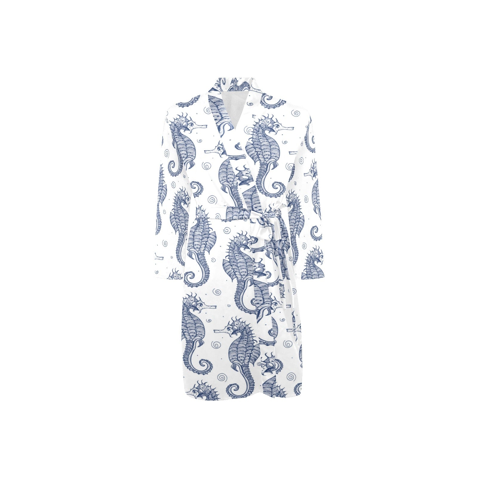 Seahorse pattern background Men's Long Sleeve Belted Night Robe
