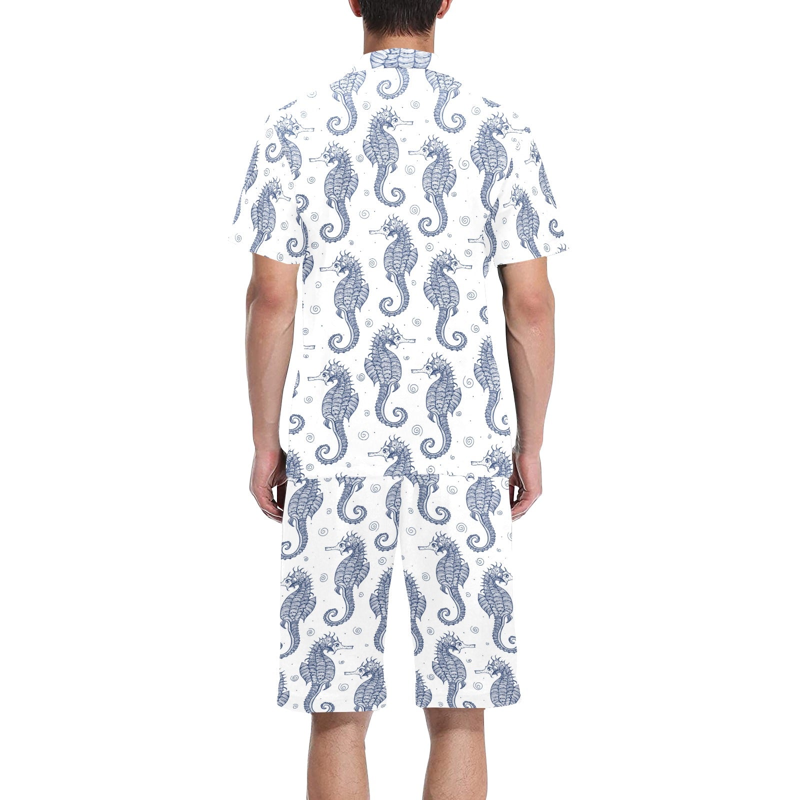 Seahorse pattern background Men's V-Neck Short Pajama Set