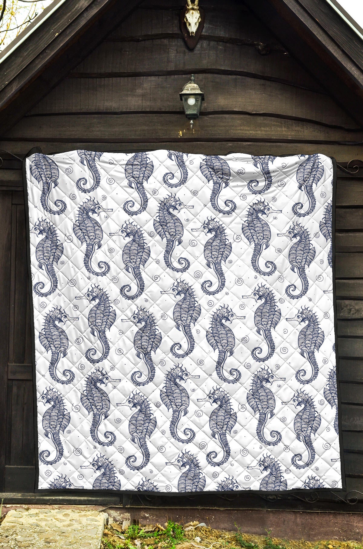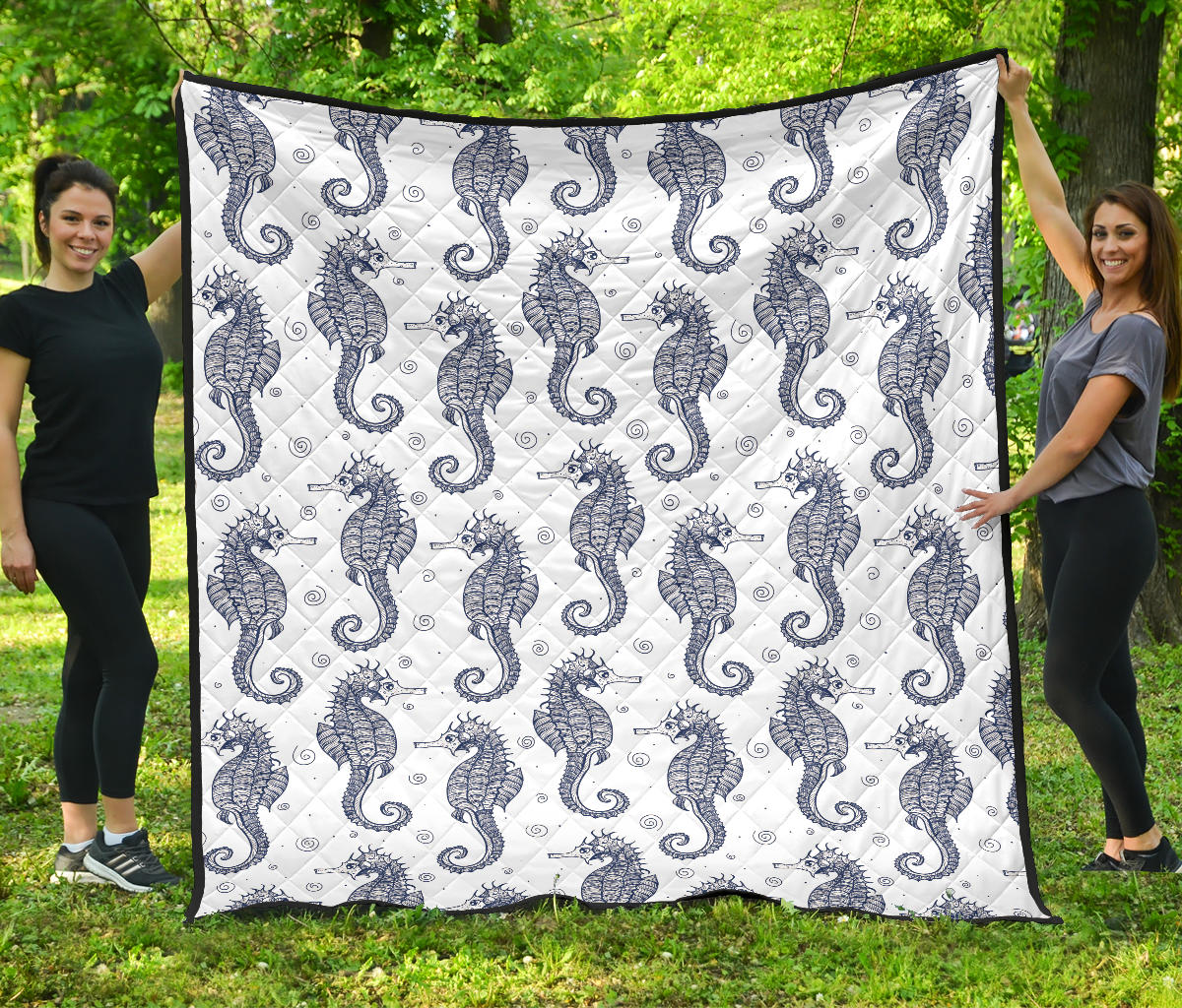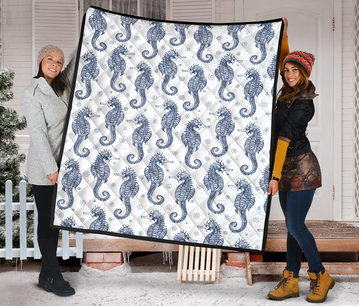 Seahorse Pattern Background Premium Quilt is a uniqued design and limited item. It made to order, hand printed, and sewn with love in our factory.