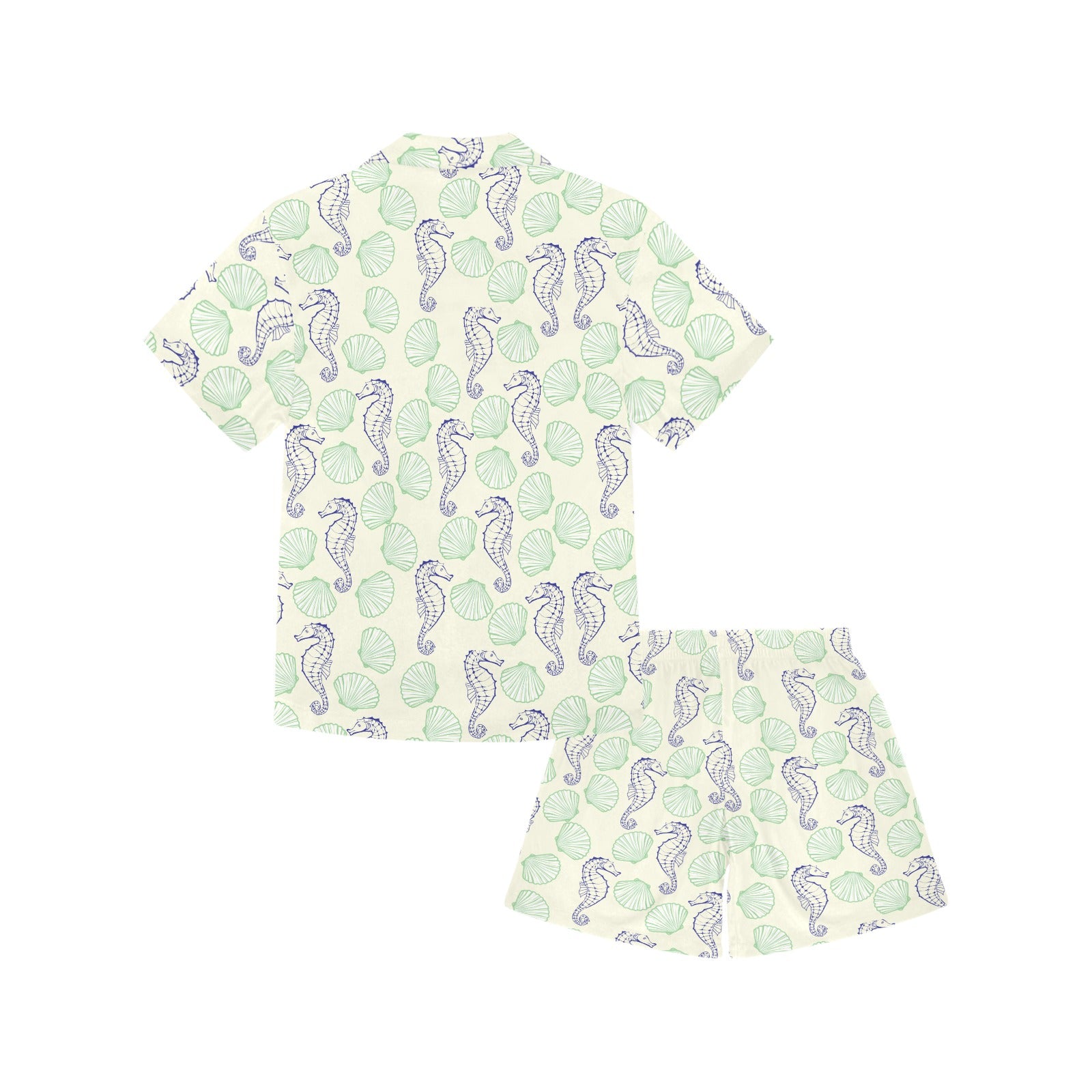 Seahorse shell pattern Kids' Boys' Girls' V-Neck Short Pajama Set