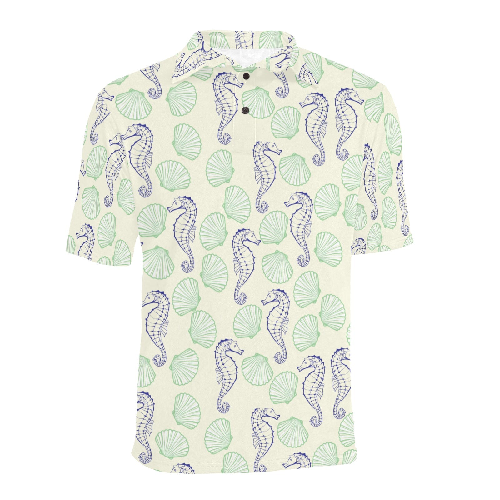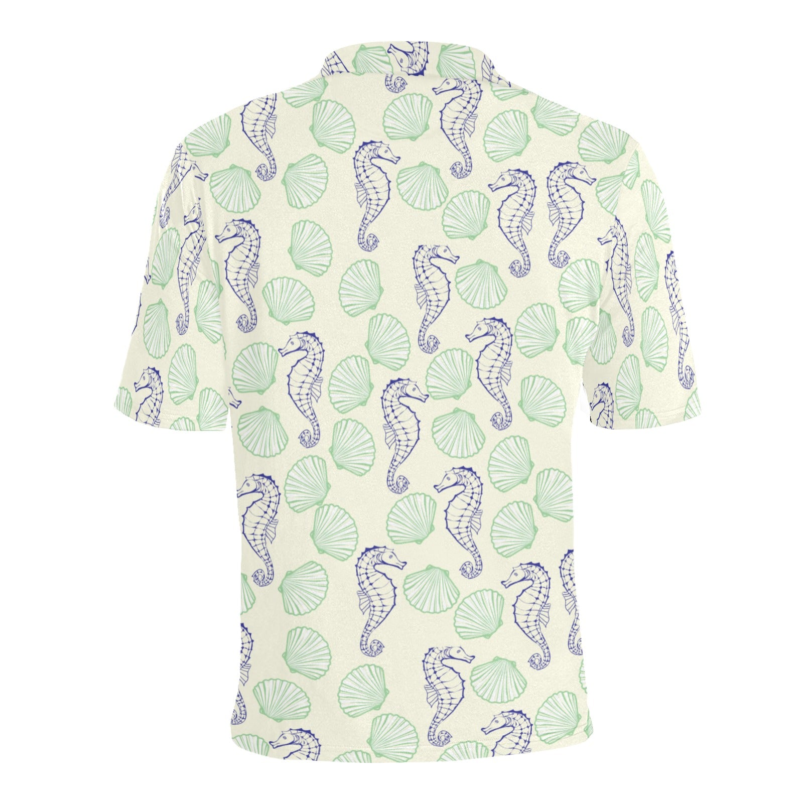 Seahorse shell pattern Men's All Over Print Polo Shirt