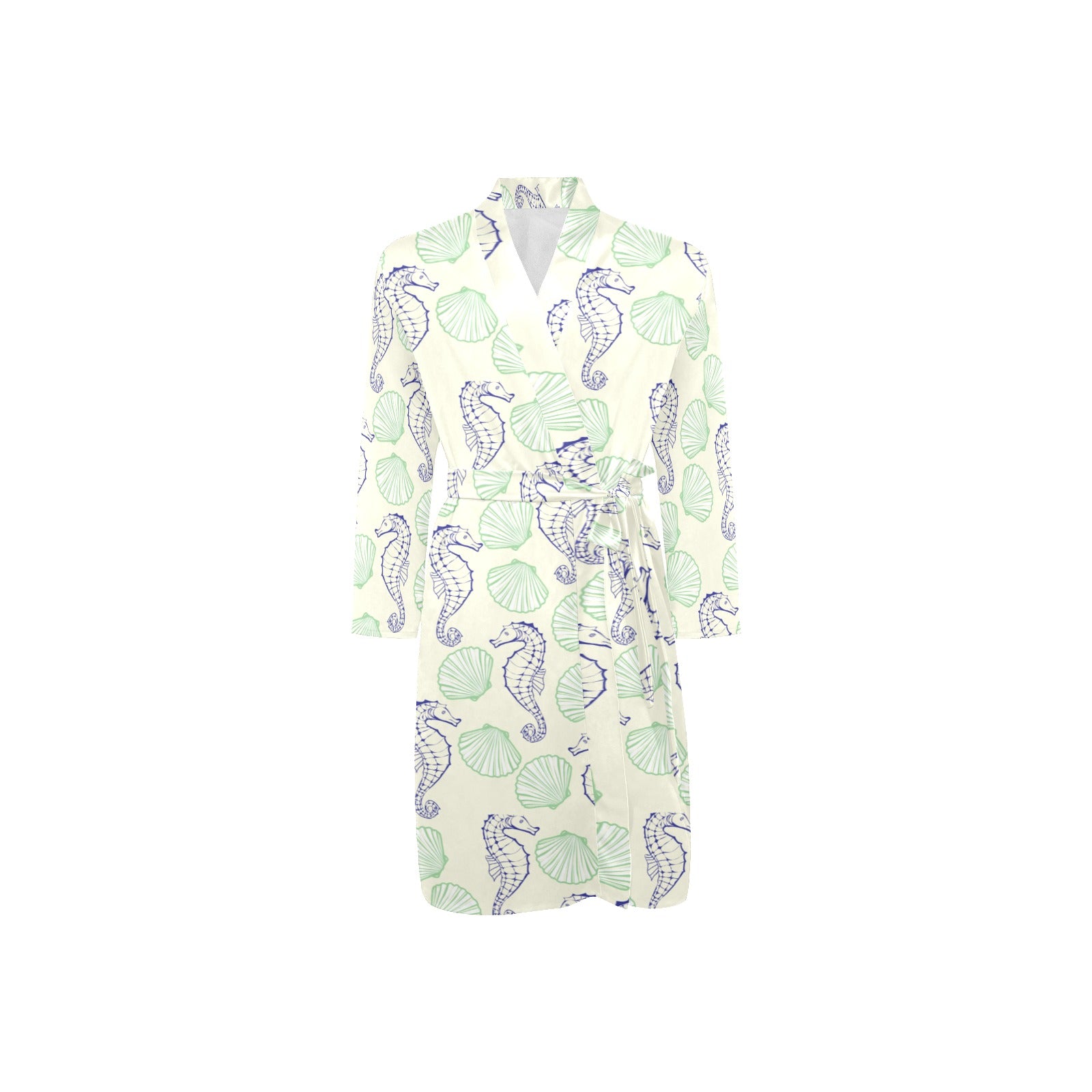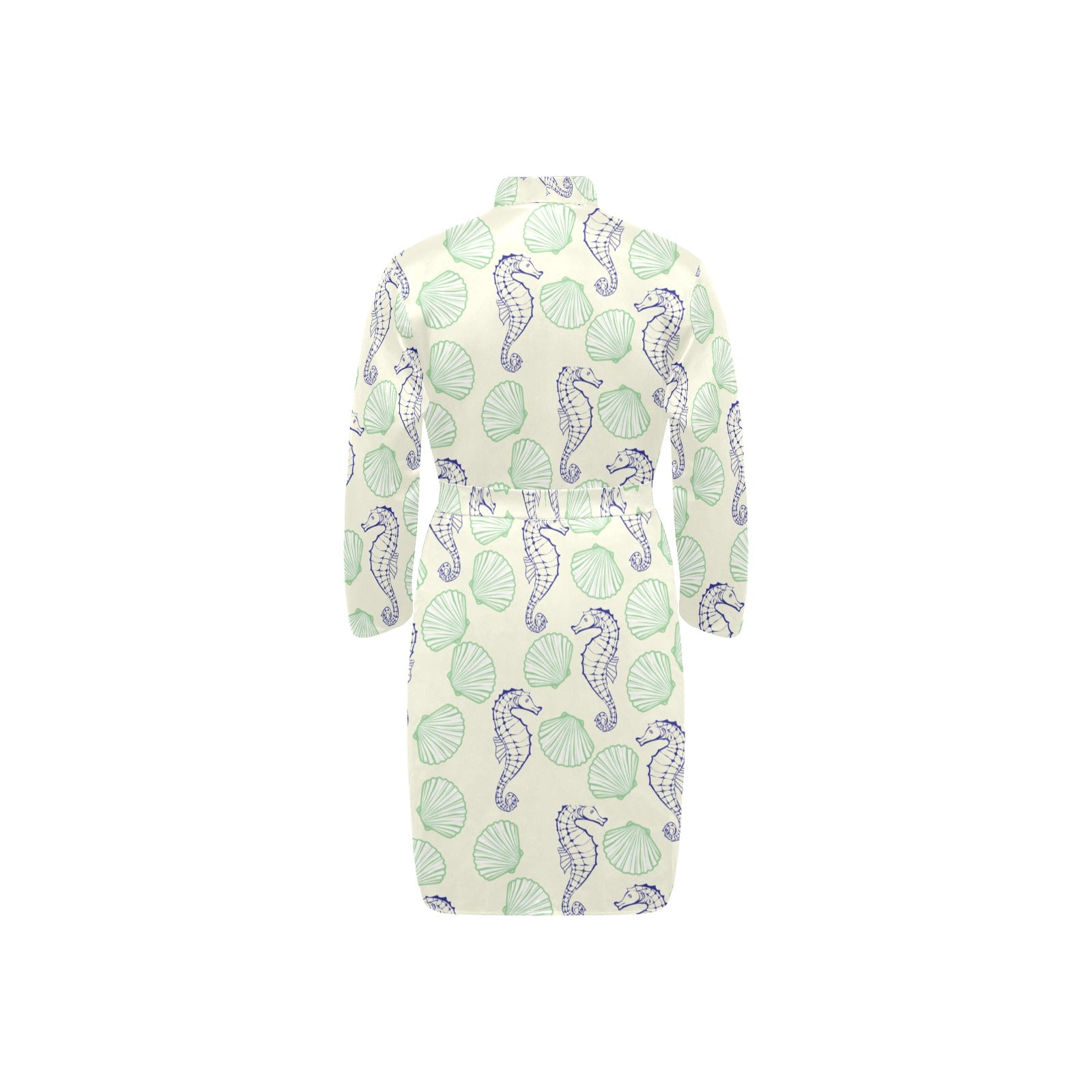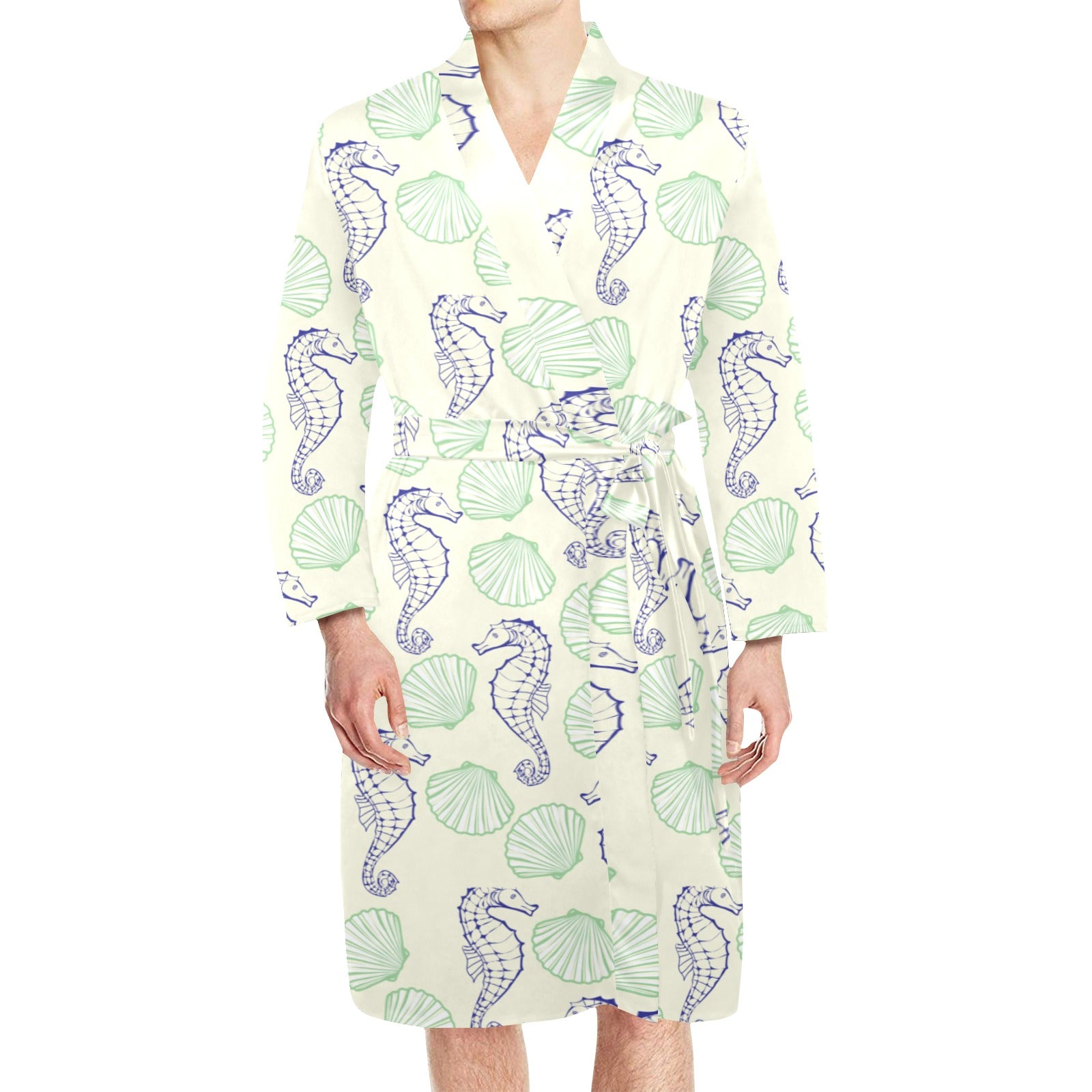 Seahorse shell pattern Men's Long Sleeve Belted Night Robe