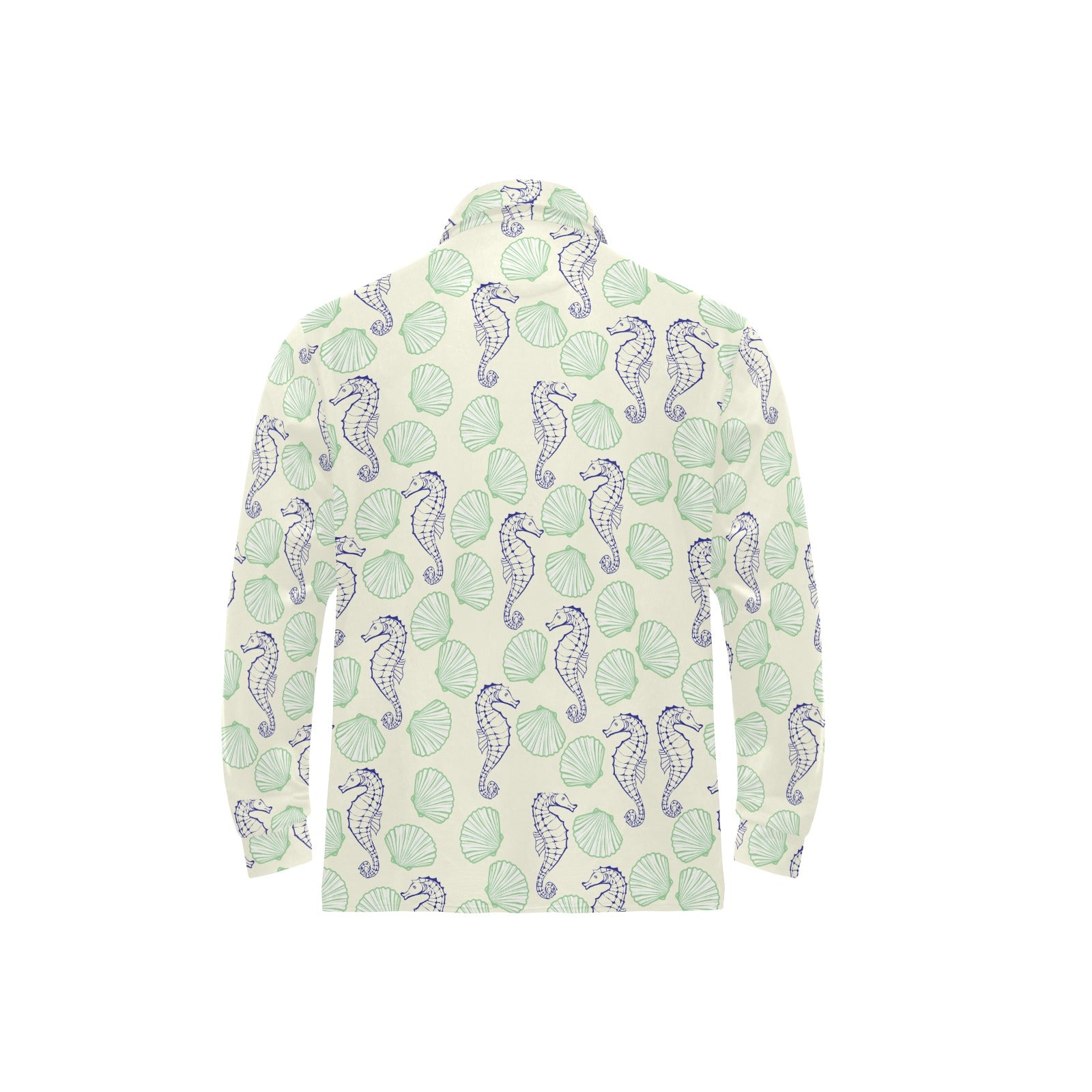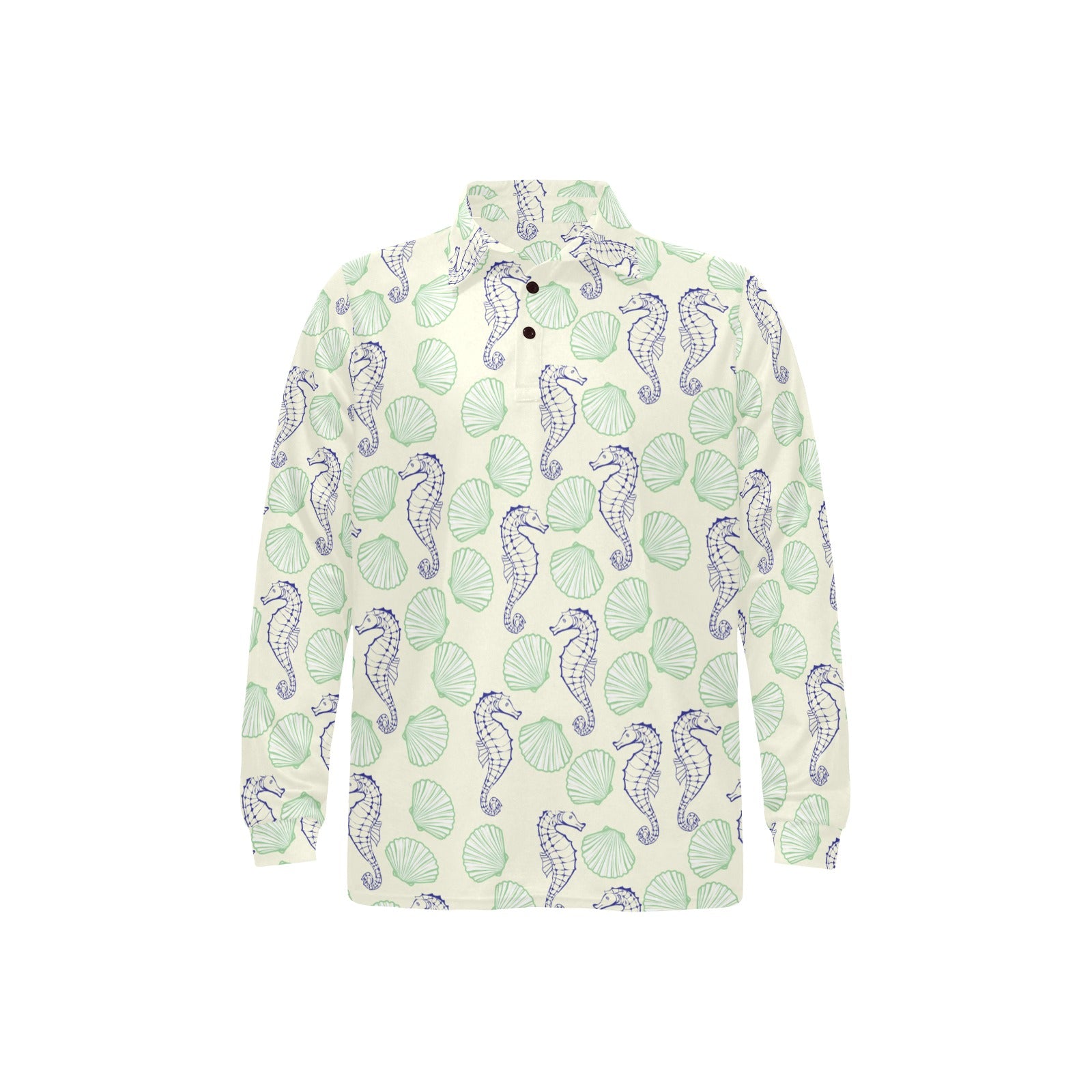 Seahorse shell pattern Men's Long Sleeve Polo Shirt