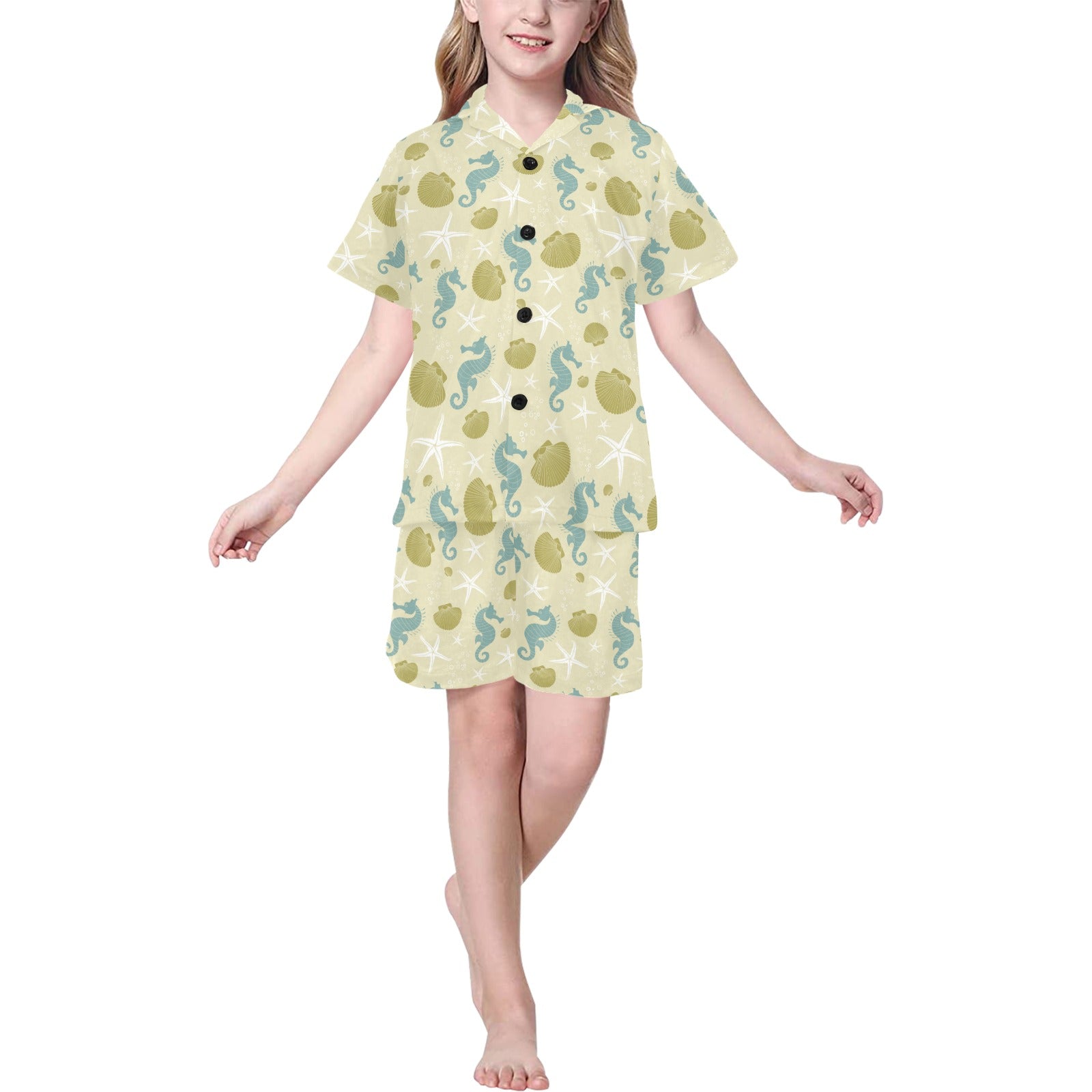 Seahorse shell starfish pattern background Kids' Boys' Girls' V-Neck Short Pajama Set