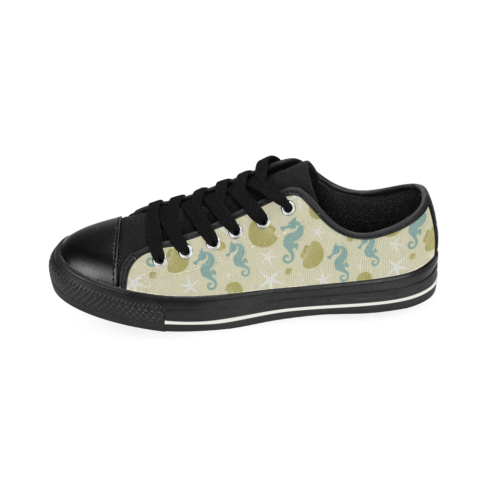 Seahorse shell starfish pattern background Men's Low Top Canvas Shoes Black