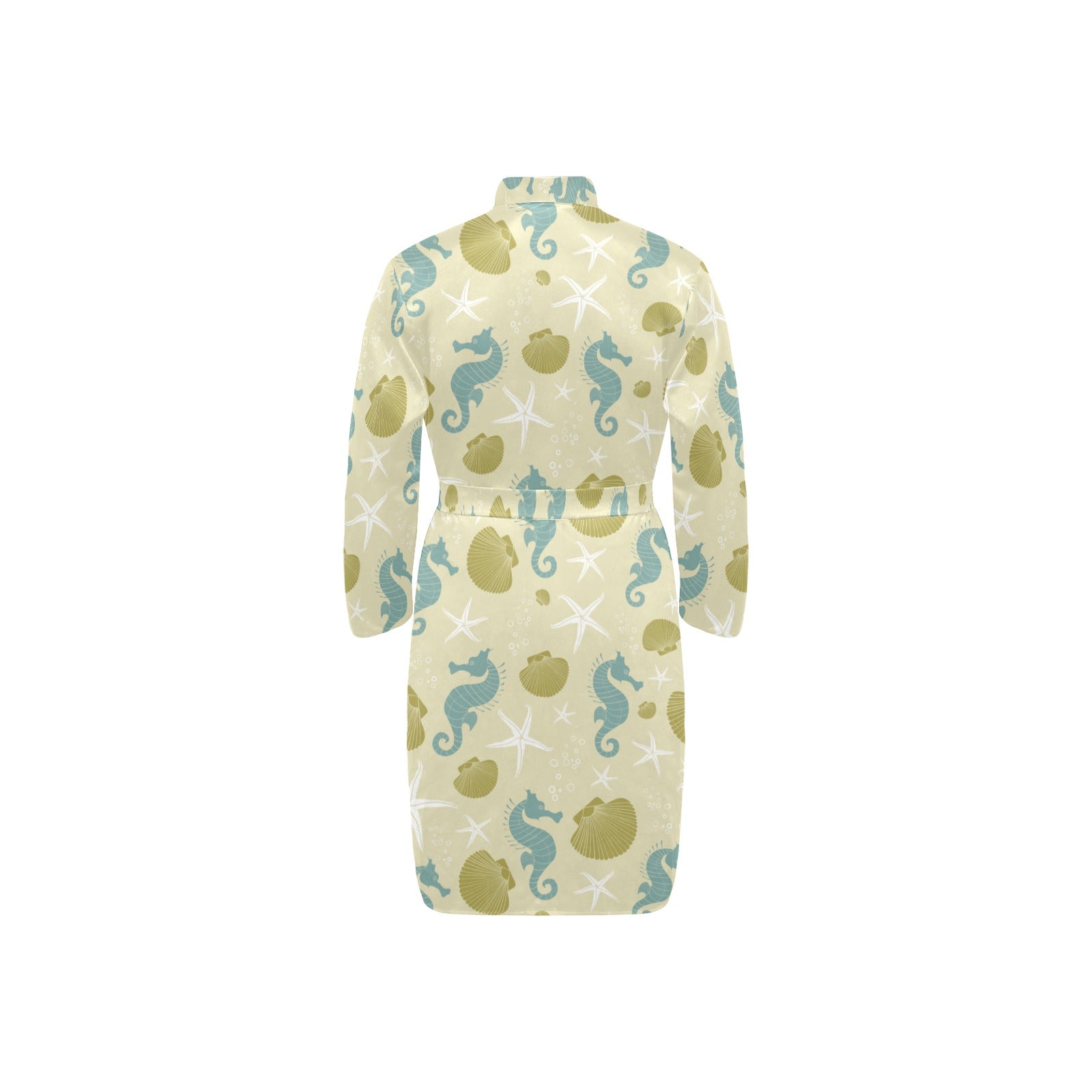 Seahorse shell starfish pattern background Men's Long Sleeve Belted Night Robe