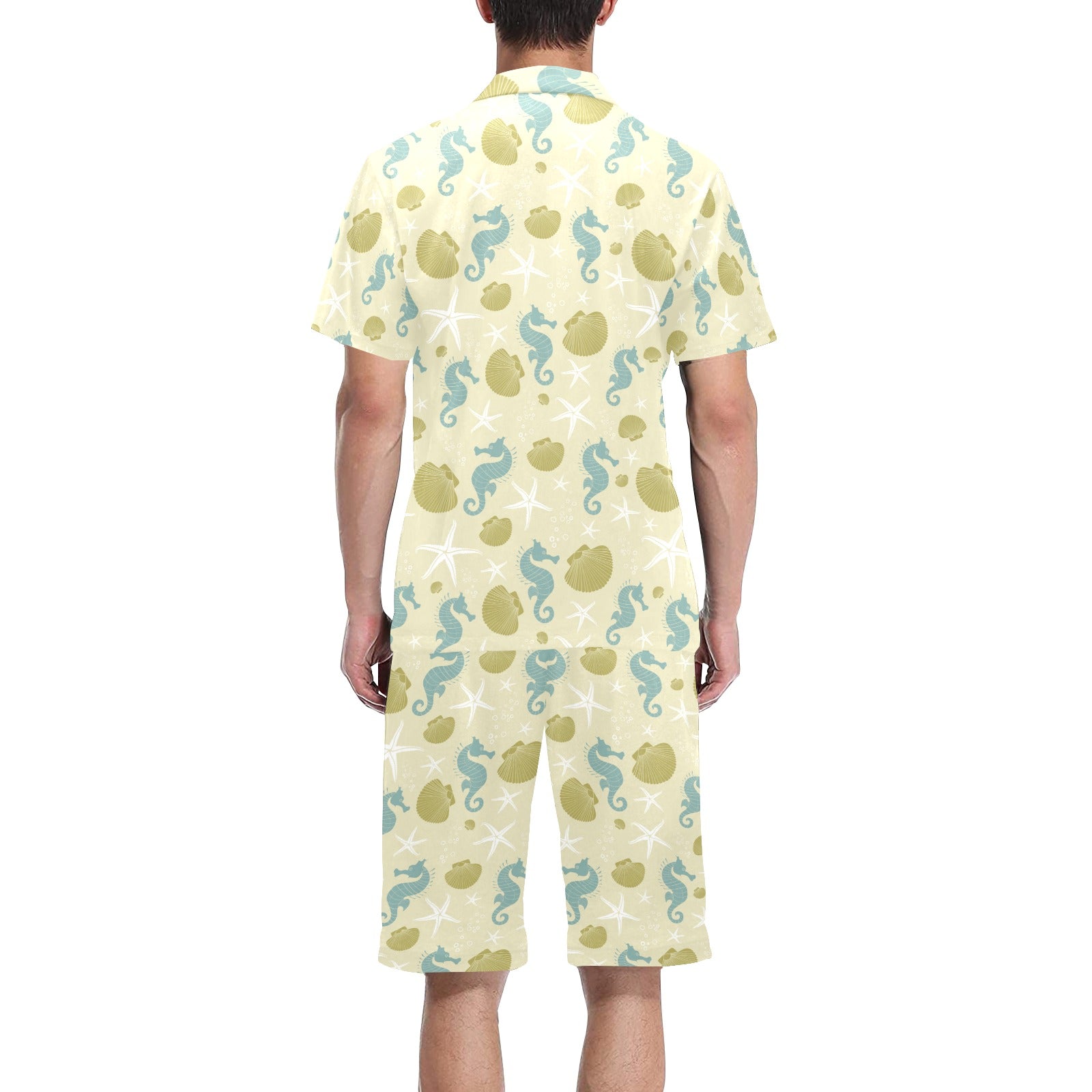 Seahorse shell starfish pattern background Men's V-Neck Short Pajama Set