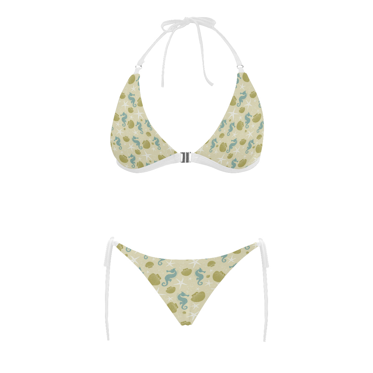 Seahorse shell starfish pattern background Sexy Bikinis Two-Piece Swimsuits are uniqued design and limited item. It made to order, hand printed, and sewn with love in our factory.