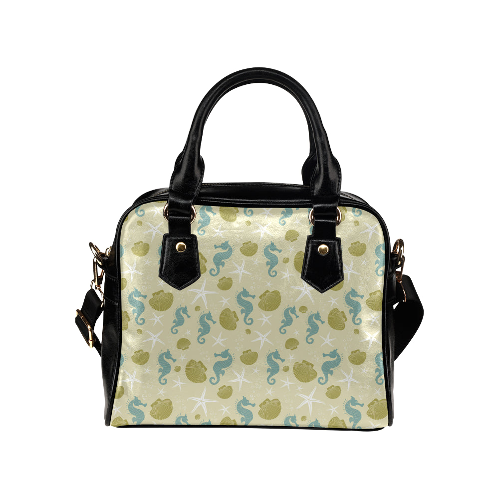 Seahorse shell starfish pattern background Shoulder Handbag is a uniqued design and limited item. It made to order, hand printed, and sewn with love in our factory.