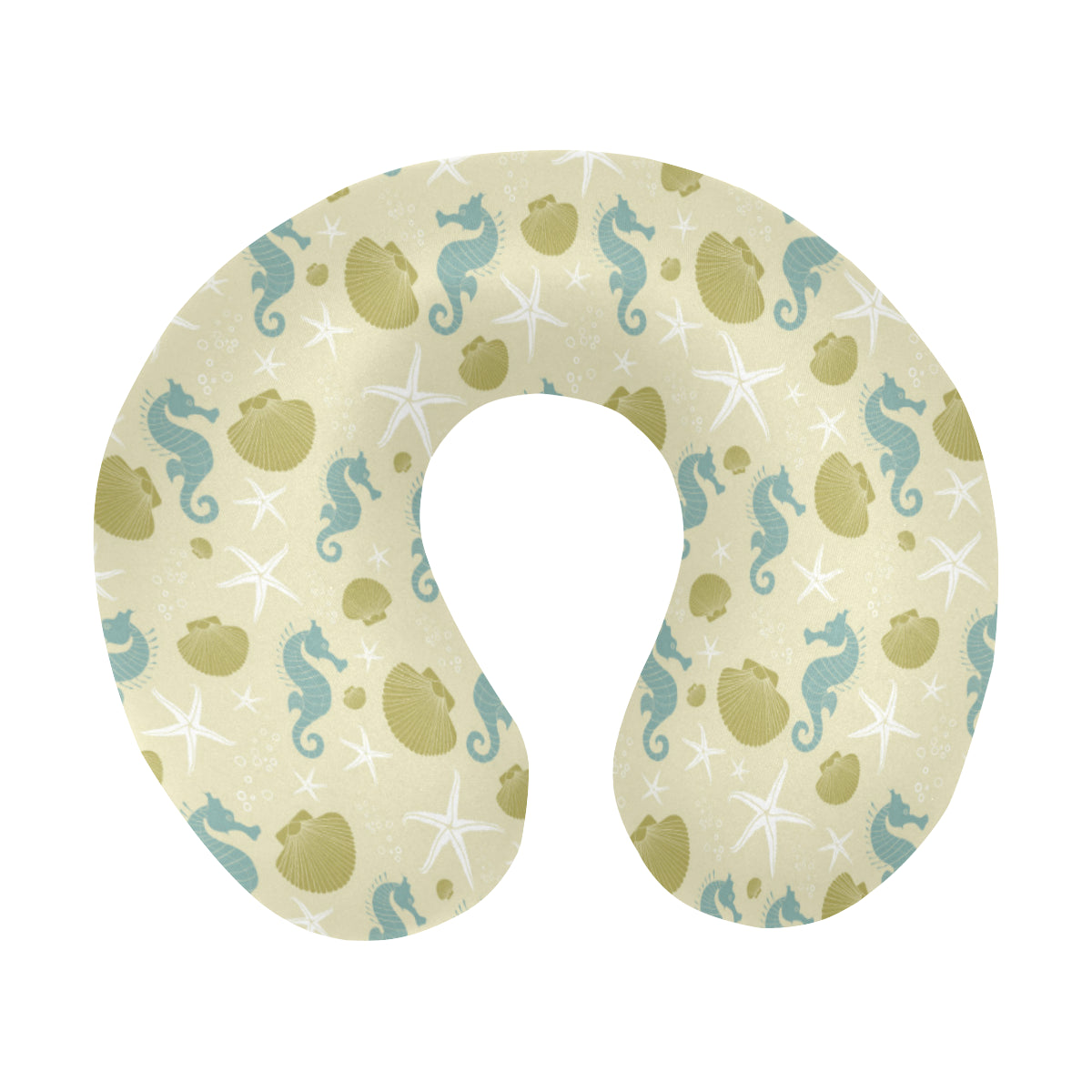 Seahorse shell starfish pattern background U-Shaped Travel Neck Pillow