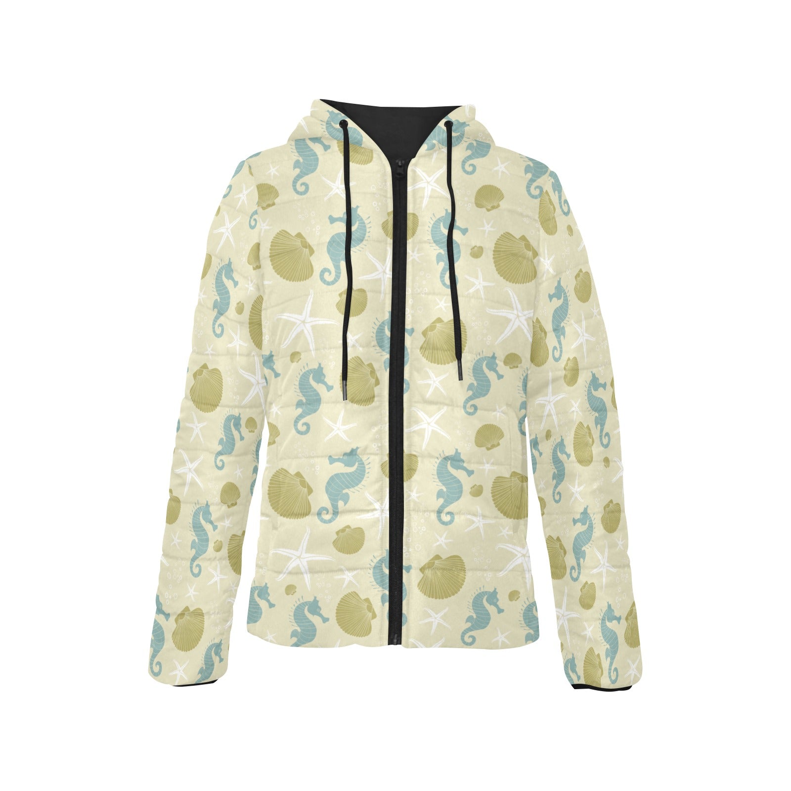 Seahorse shell starfish pattern background Women's Padded Hooded Jacket