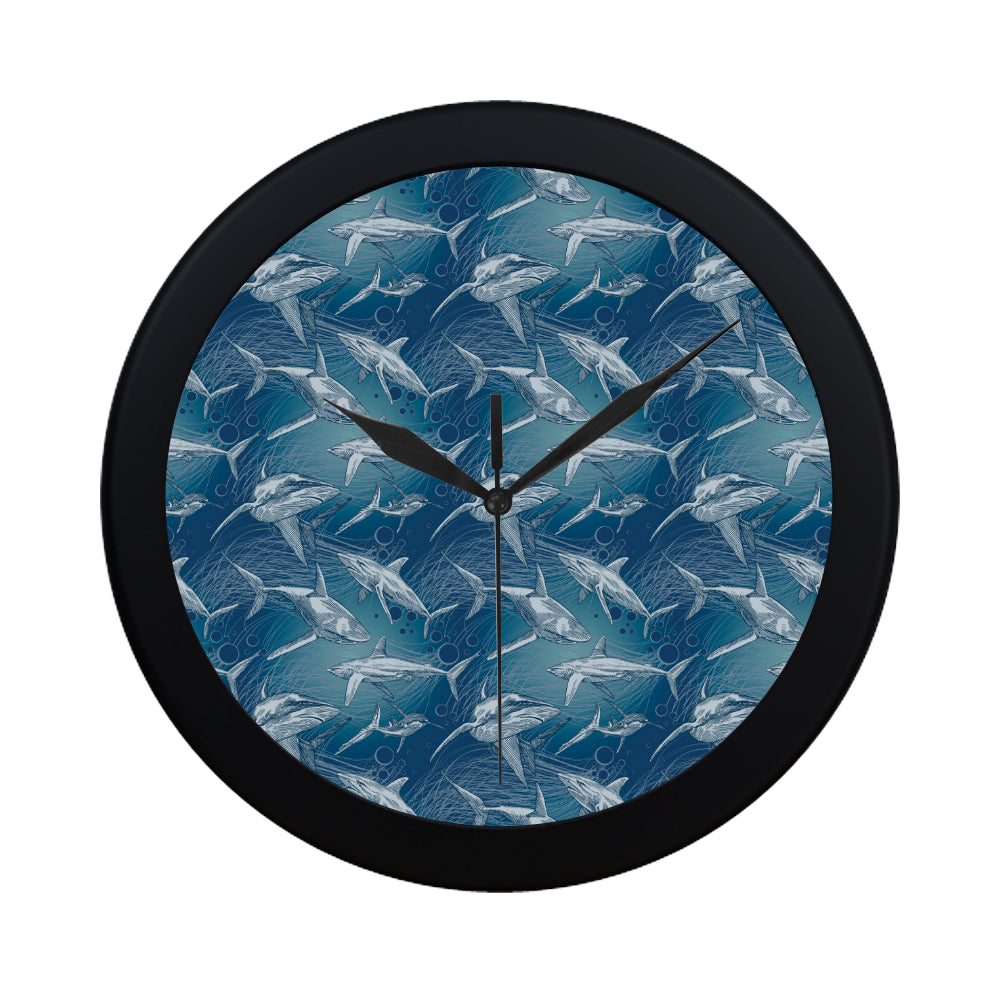Shark hand drawn Elegant Black Wall Clock