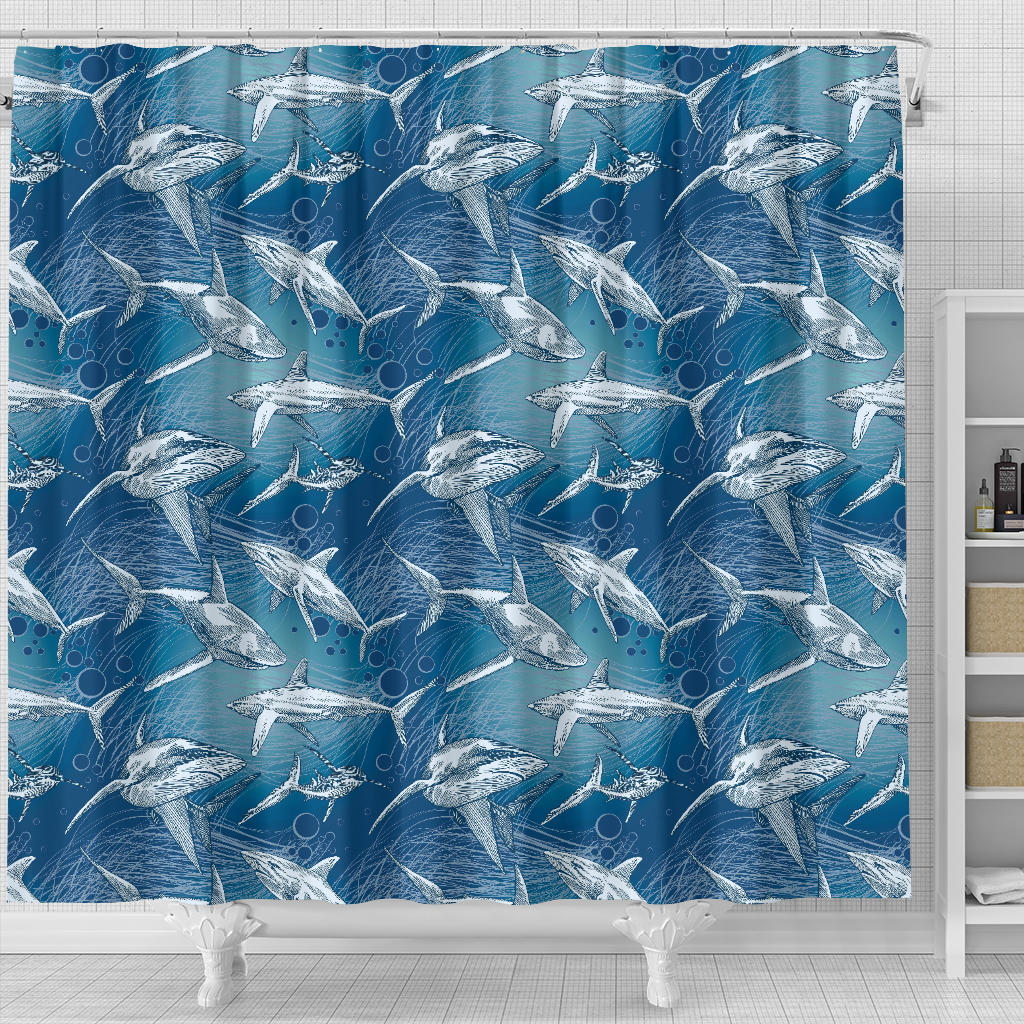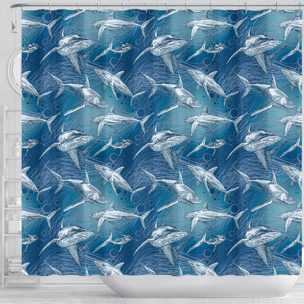 Shark Hand Drawn Shower Curtain Fulfilled In US