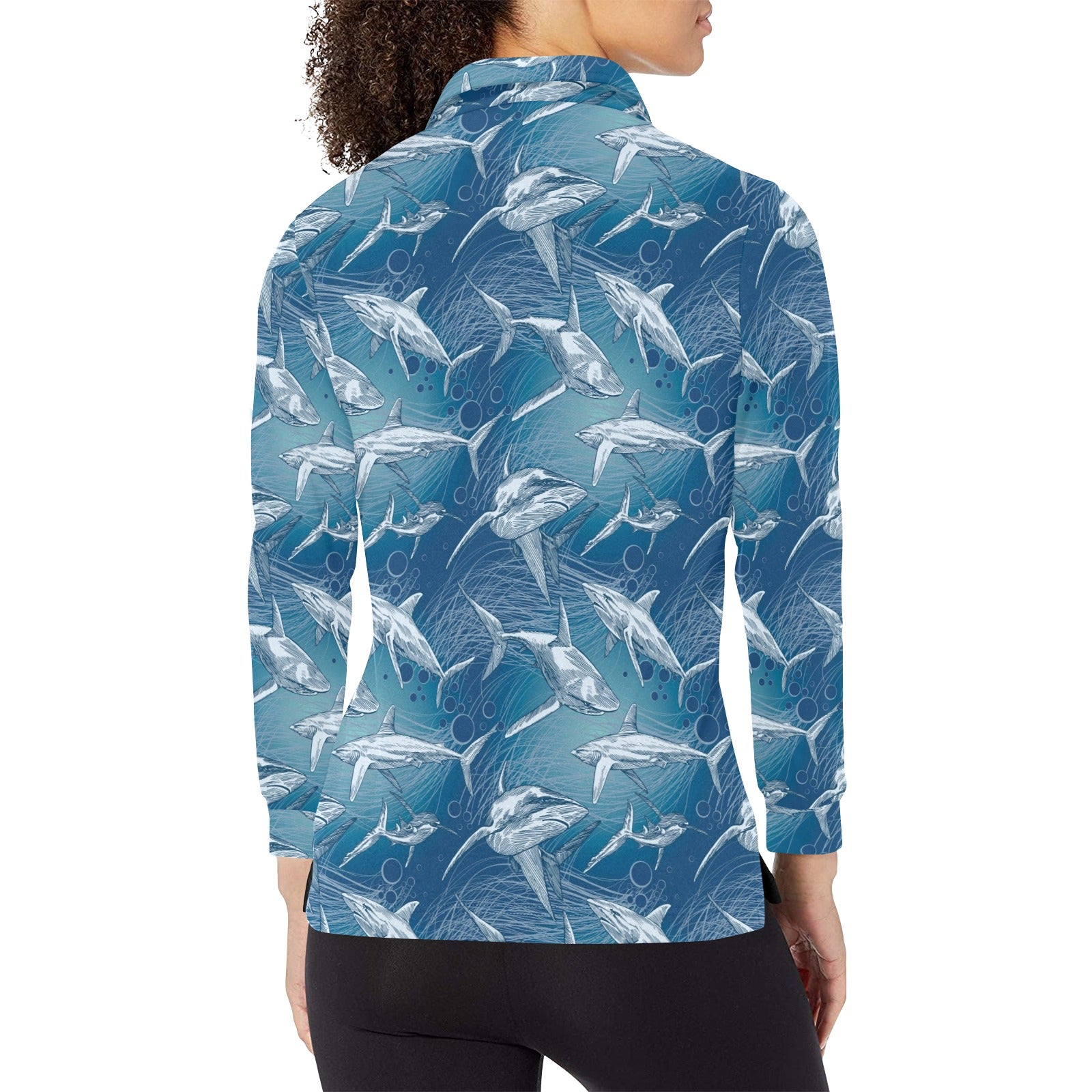 Shark hand drawn Women's Long Sleeve Polo Shirt