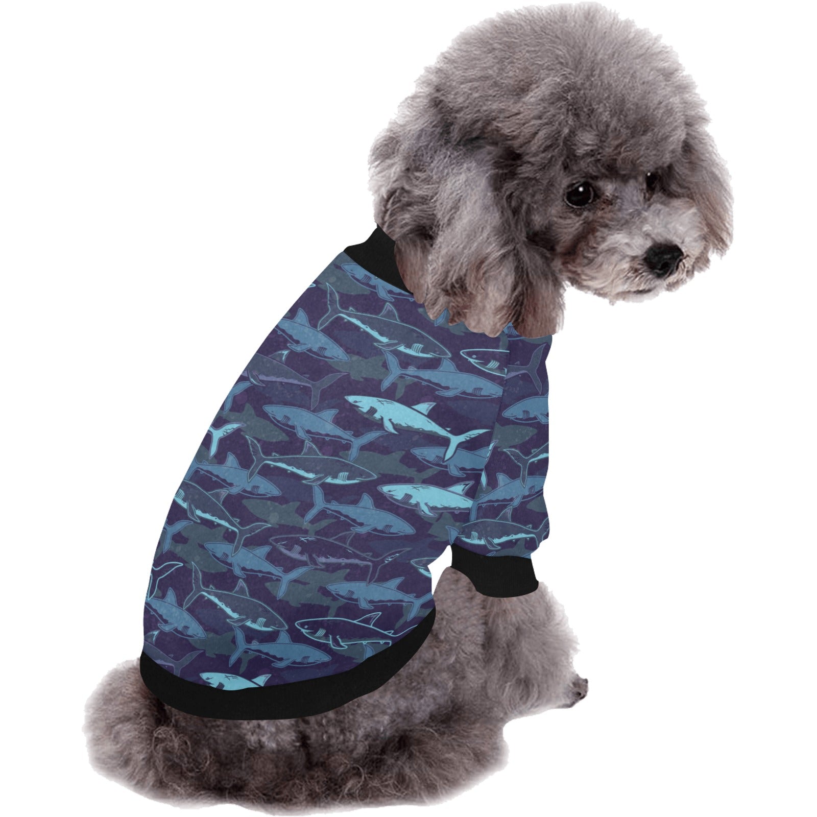 Shark pattern All Over Print Pet Dog Round Neck Fuzzy Shirt
