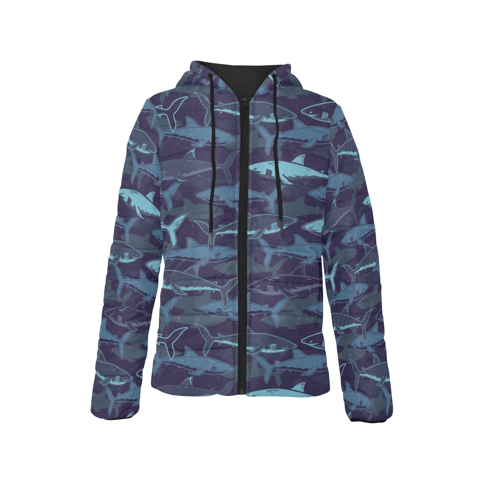 Shark pattern Women's Padded Hooded Jacket