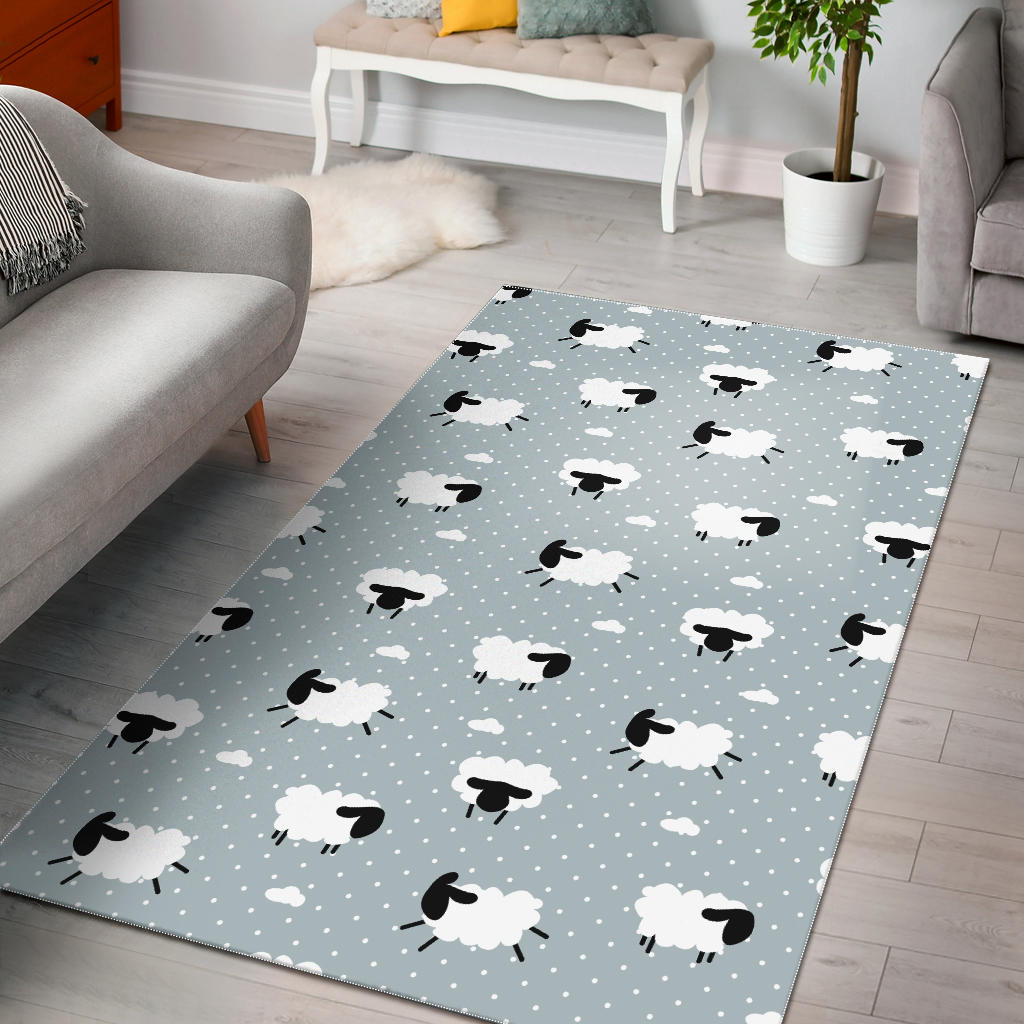 Sheep polka dot cloud pattern Area Rug is a uniqued design and limited item. It made to order, hand printed, and sewn with love in our factory.