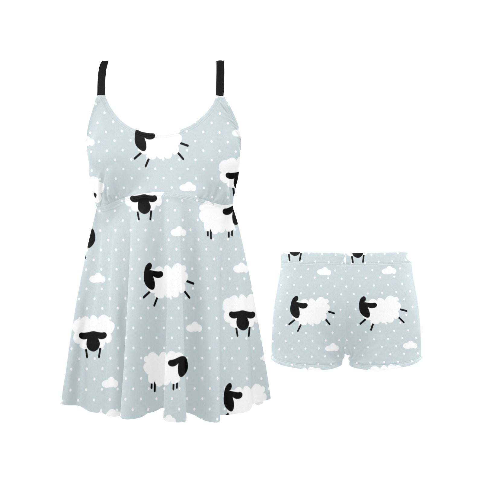 Sheep polka dot cloud pattern Chest Sexy Pleated Two Piece Swim Dress