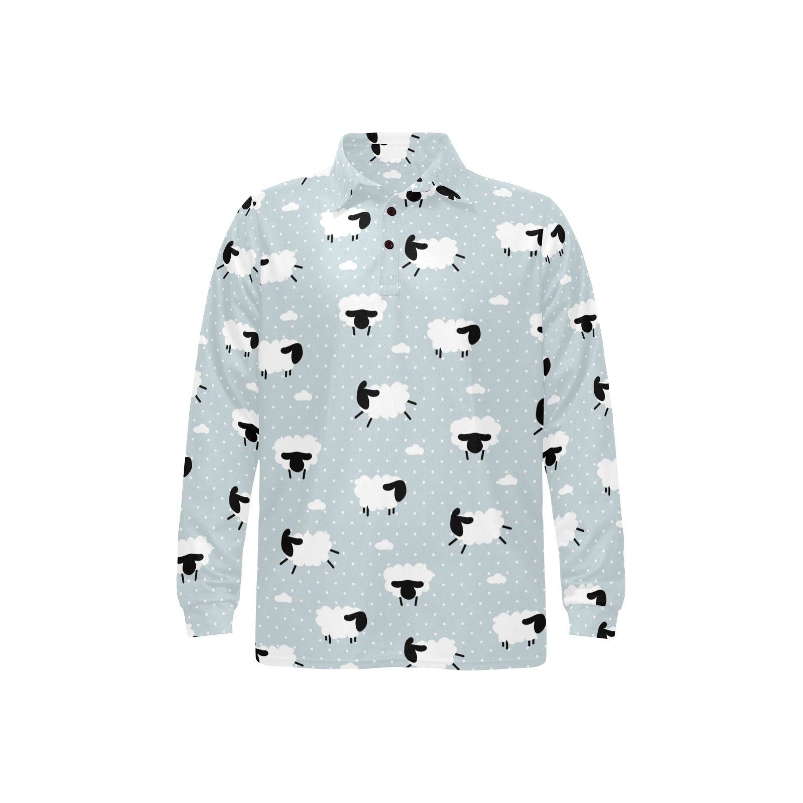 Sheep polka dot cloud pattern Men's Long Sleeve Polo Shirt
