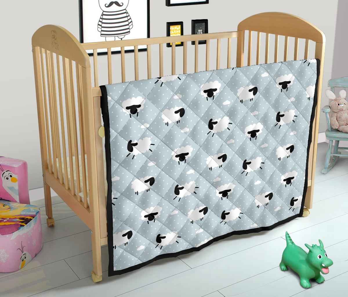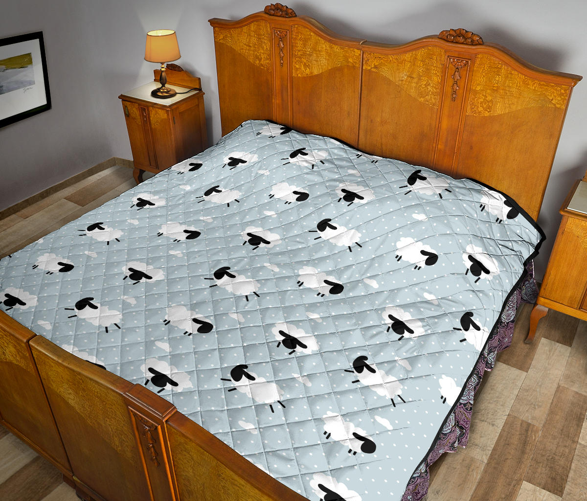 Sheep Polka Dot Cloud Pattern Premium Quilt. is a uniqued design and limited item. It made to order, hand printed, and sewn with love in our factory.