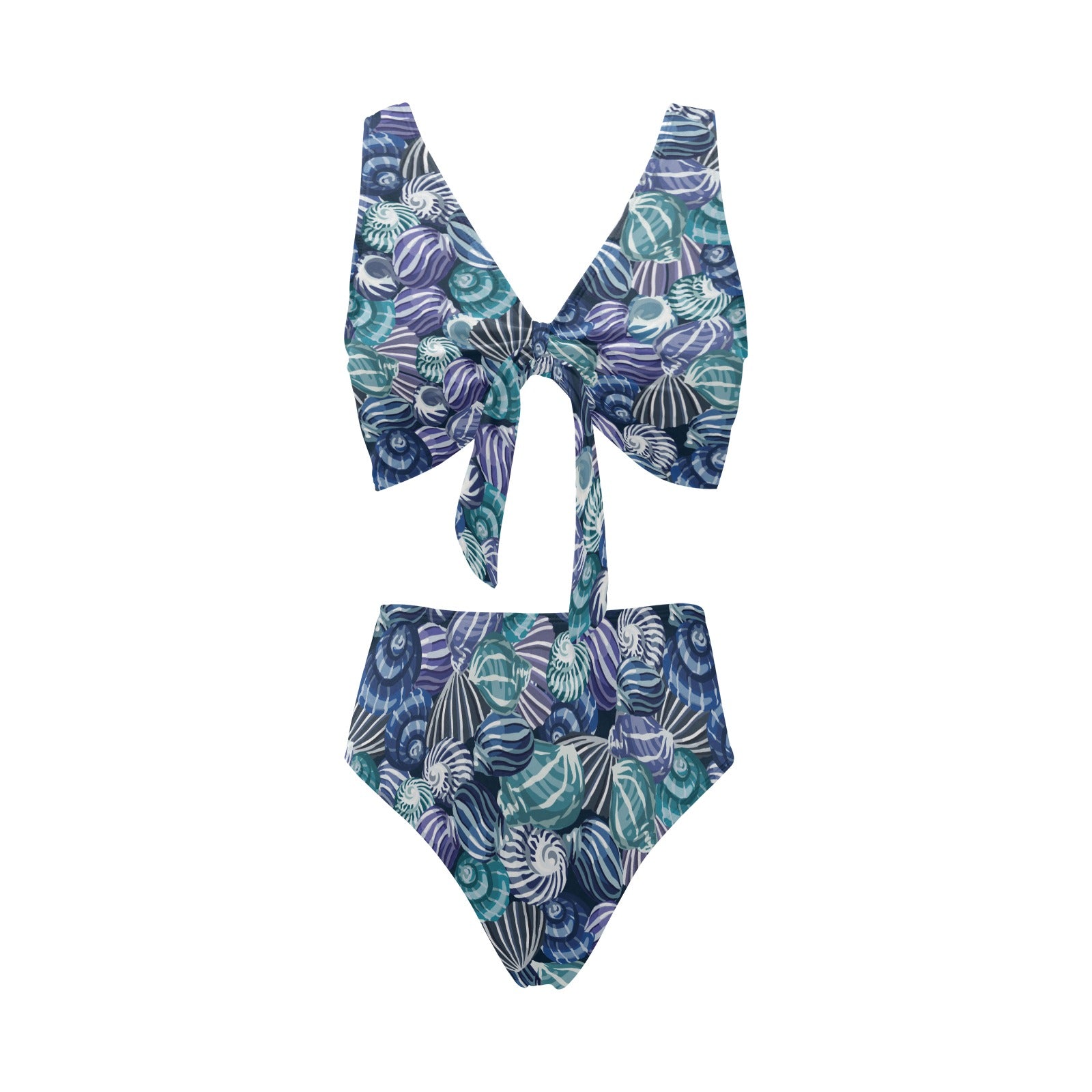 Shell design pattern Chest Bowknot High Waisted Bikini Swimsuit