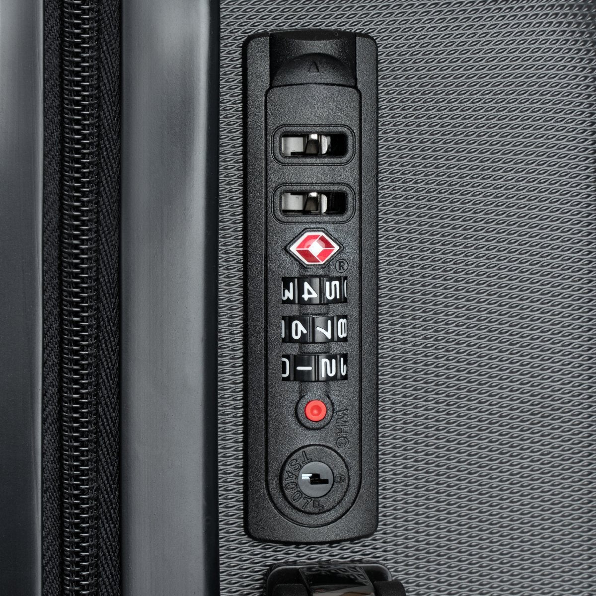 This stylish suitcase boasts a durable polycarbonate front and ABS back hard-shell for ultimate protection. It features an adjustable telescopic handle and a removable inner lining secured by a black rubber seal. Inside, you'll find two spacious pockets for organized packing. The four double-wheels offer smooth, 360° swivel for effortless maneuvering. For added security, the suitcase includes a built-in lock.
