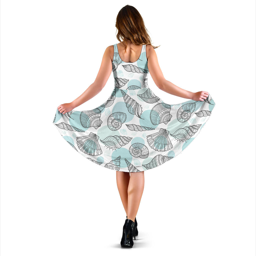 Shell polynesian tribal Sleeveless Midi Dress is a uniqued design and limited item. It made to order, hand printed, and sewn with love in our factory.