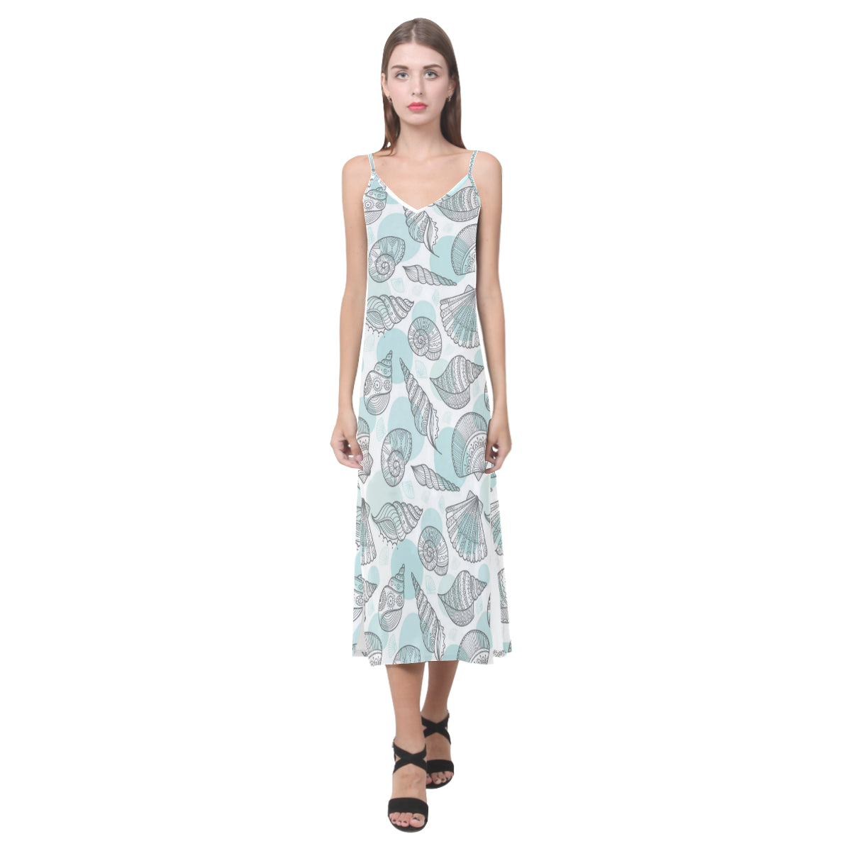 Shell polynesian tribal V-Neck Open Fork Long Dress is a uniqued design and limited item. It made to order, hand printed, and sewn with love in our factory.