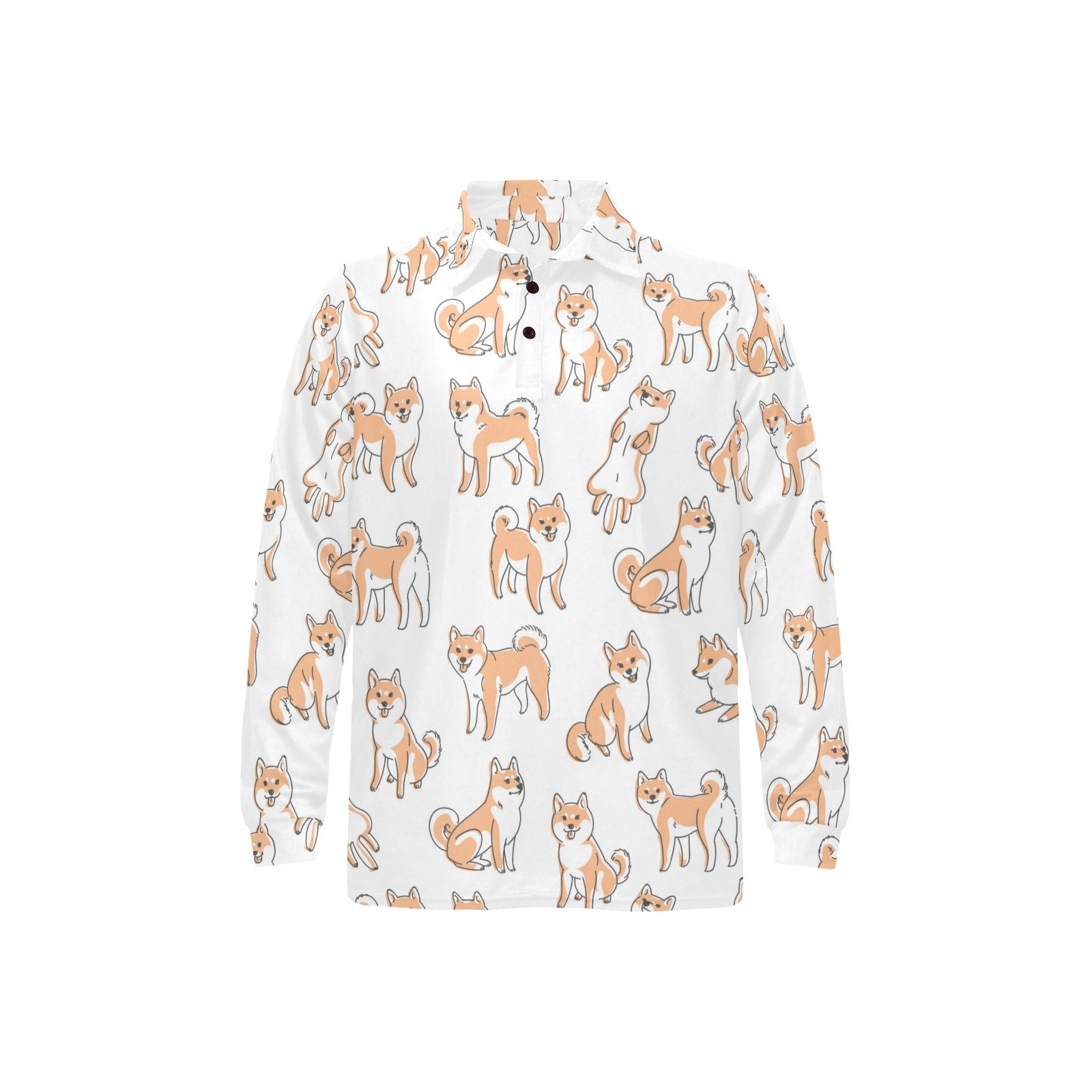 shiba inu dog pattern Men's Long Sleeve Polo Shirt