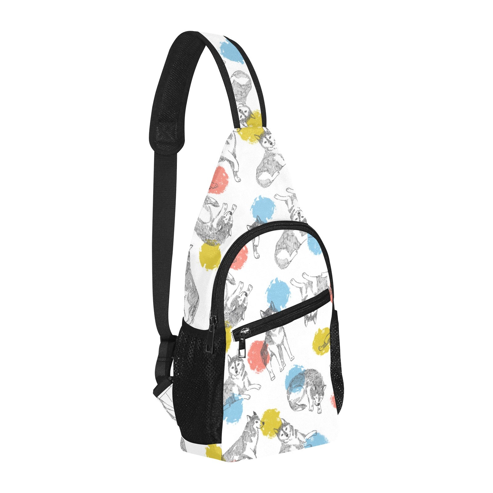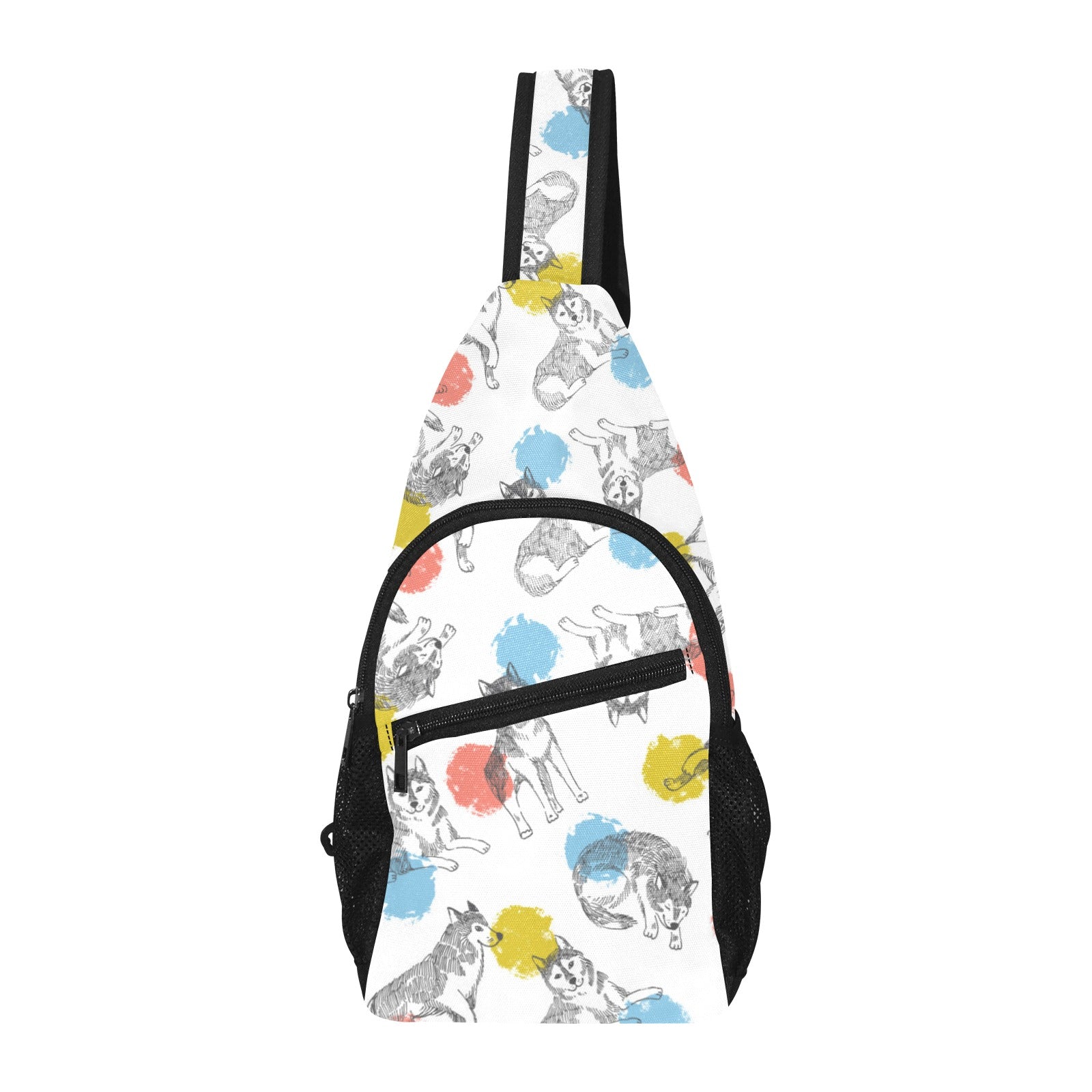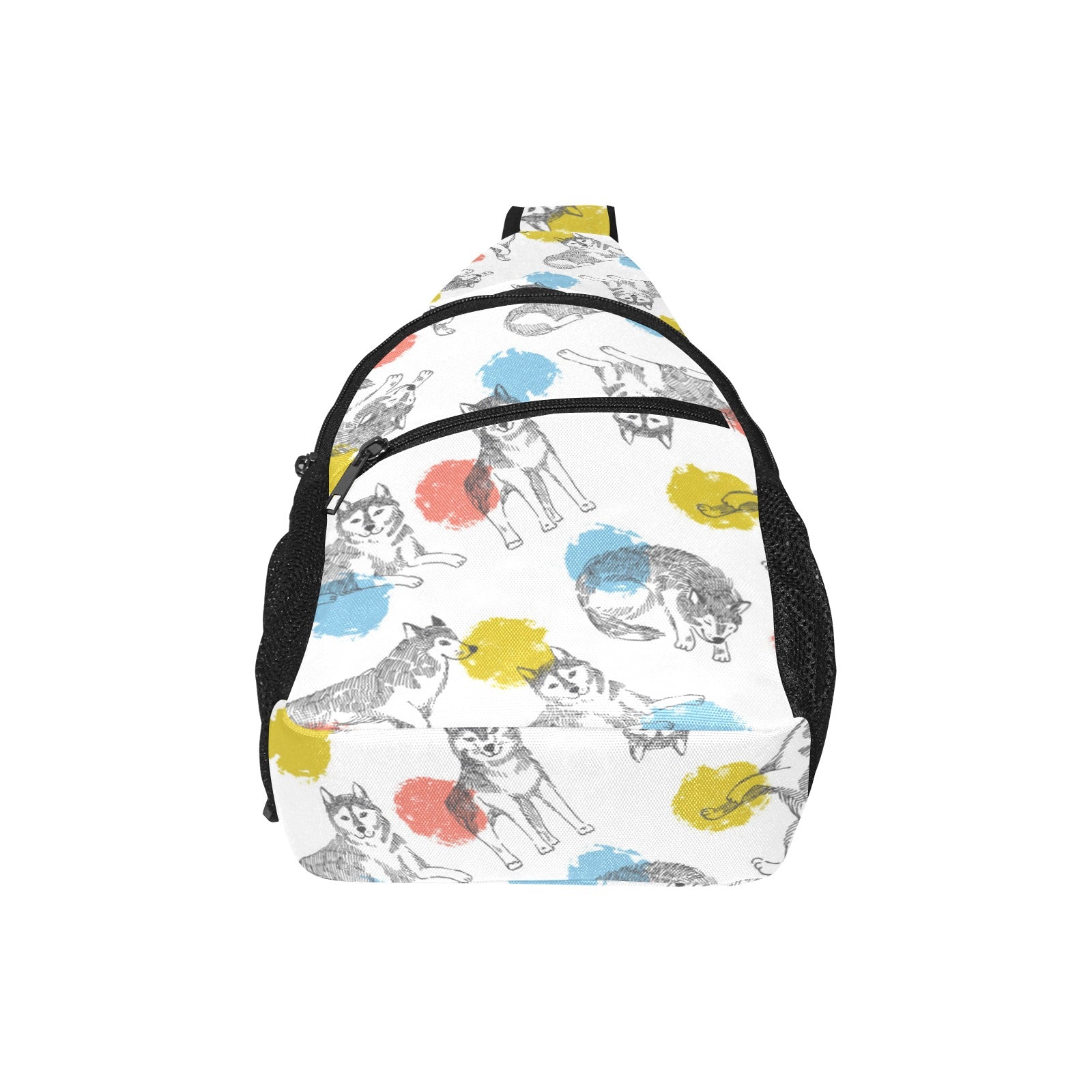 Siberian husky and colorful circle pattern All Over Print Chest Bag