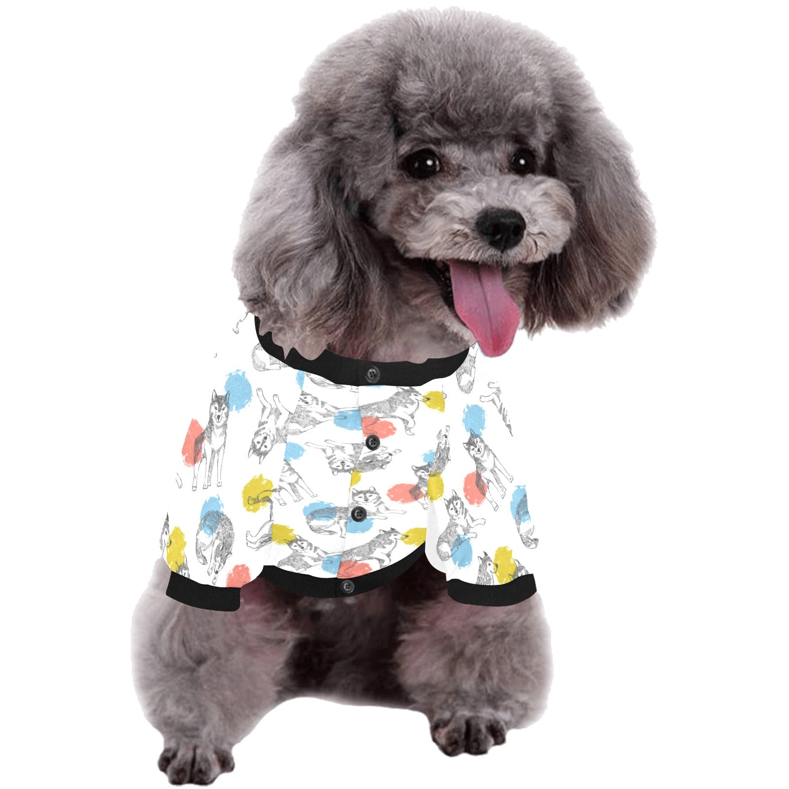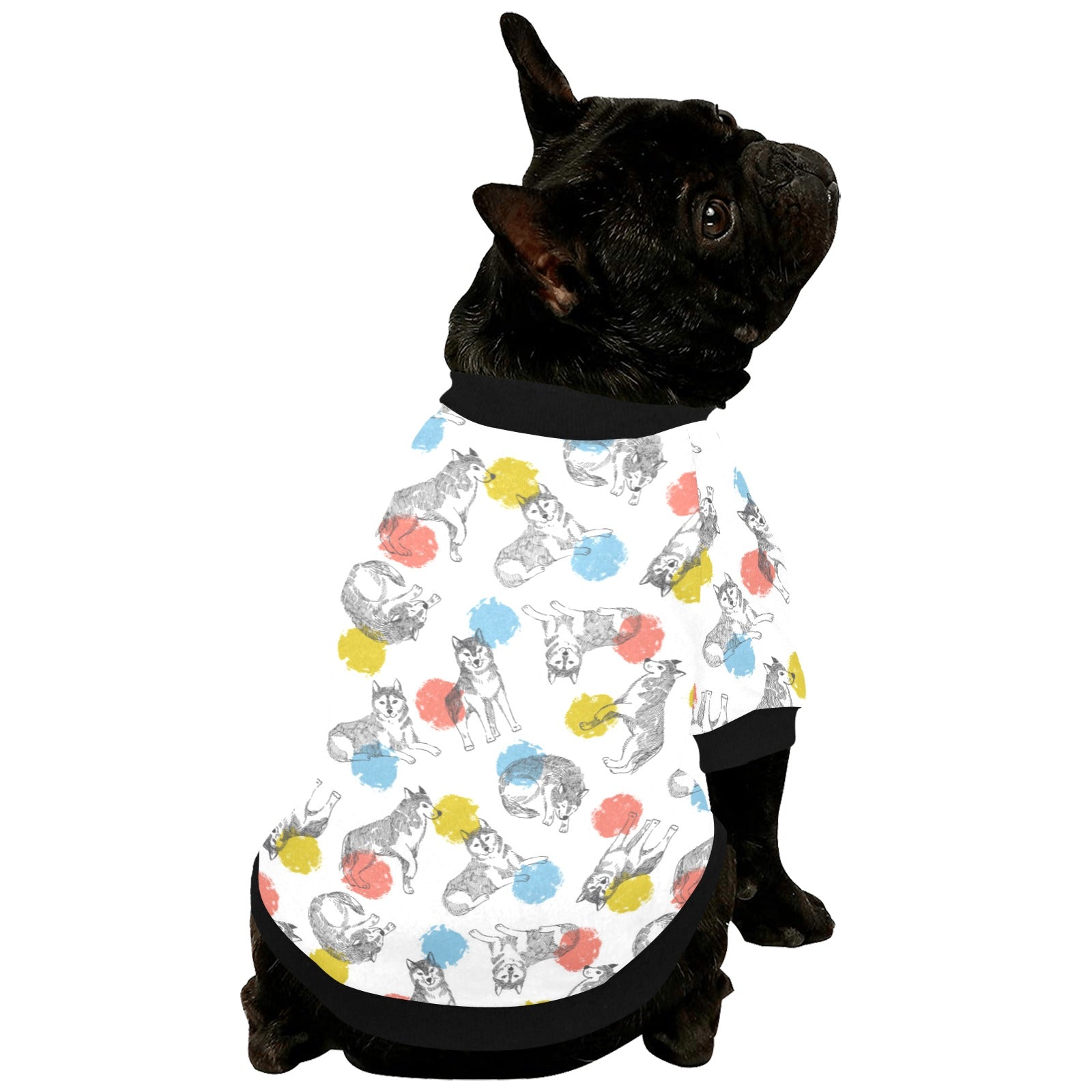 Siberian husky and colorful circle pattern All Over Print Pet Dog Round Neck Fuzzy Shirt