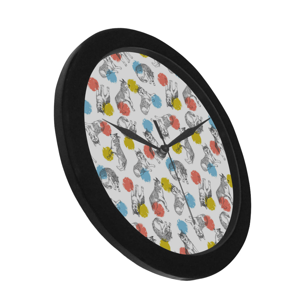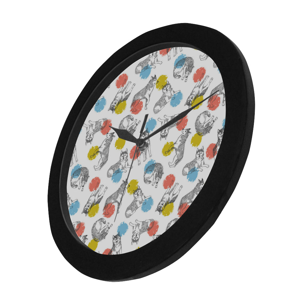 Siberian husky and colorful circle pattern Elegant Black Wall Clock is a uniqued design and limited item. It made to order, hand printed, and sewn with love in our factory.