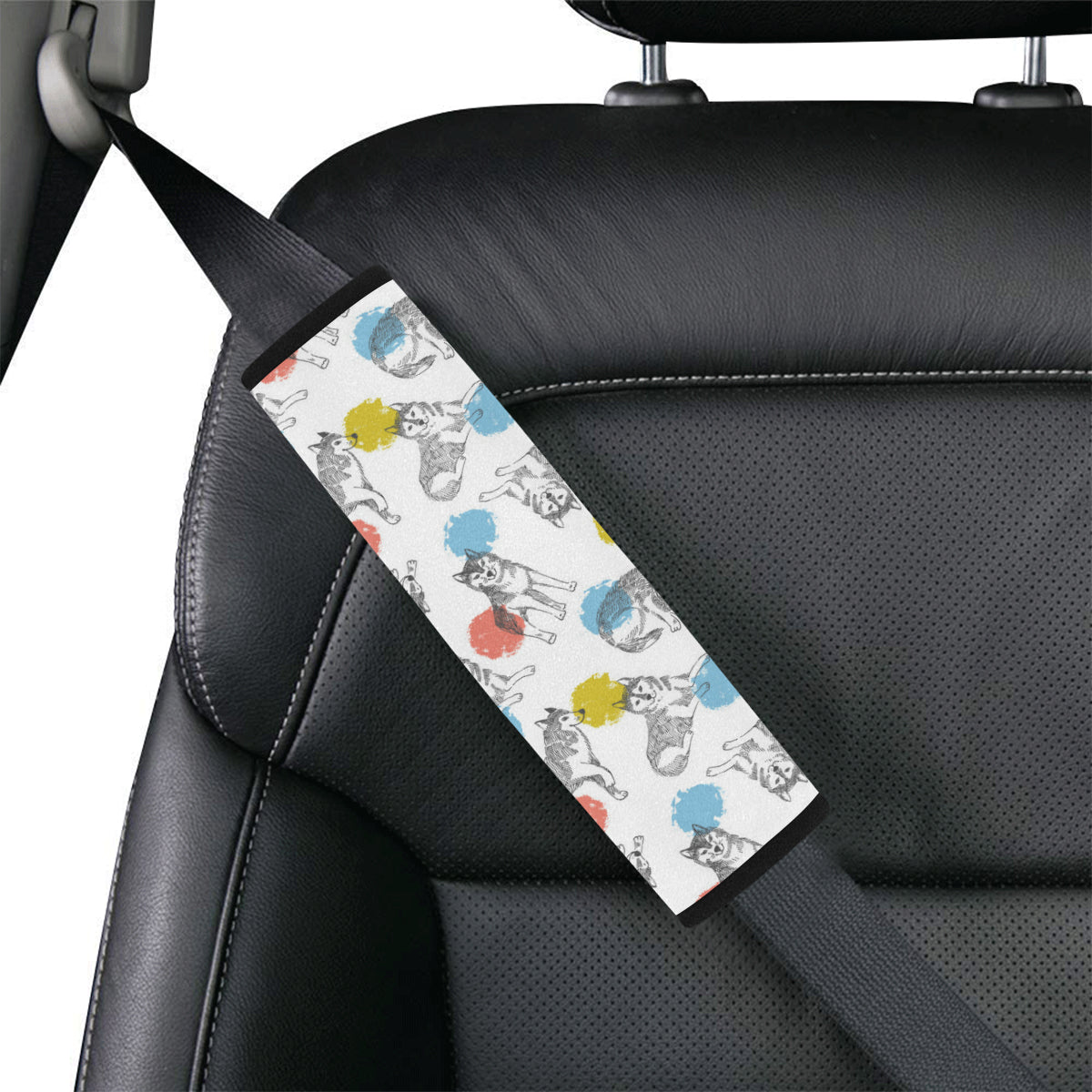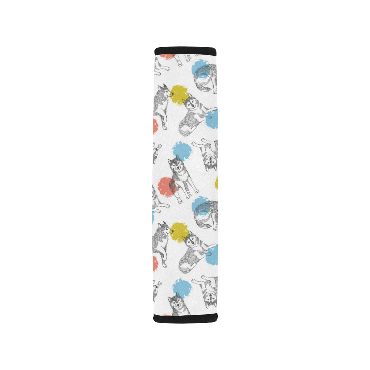 Siberian husky and colorful circle pattern Car Seat Belt Cover is a uniqued design and limited item. It made to order, hand printed, and sewn with love in our factory.