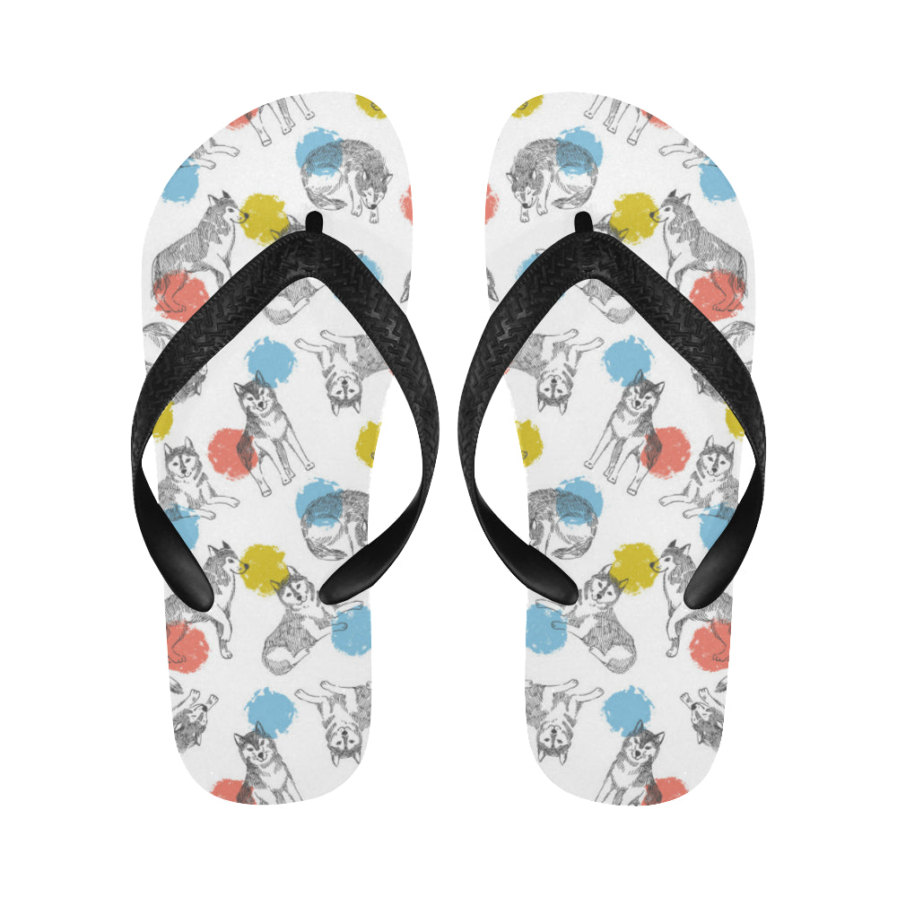Siberian husky and colorful circle pattern Unisex Flip Flops