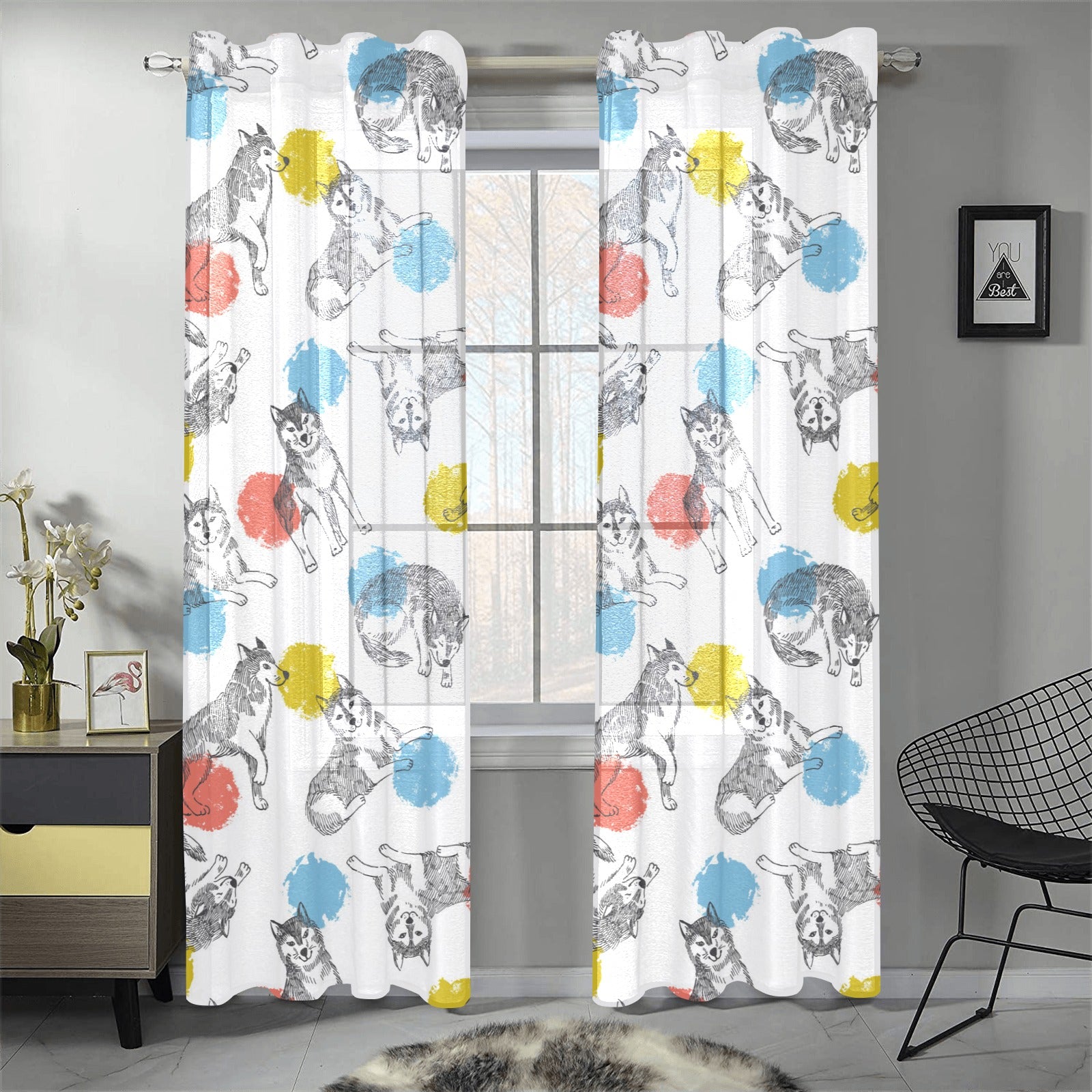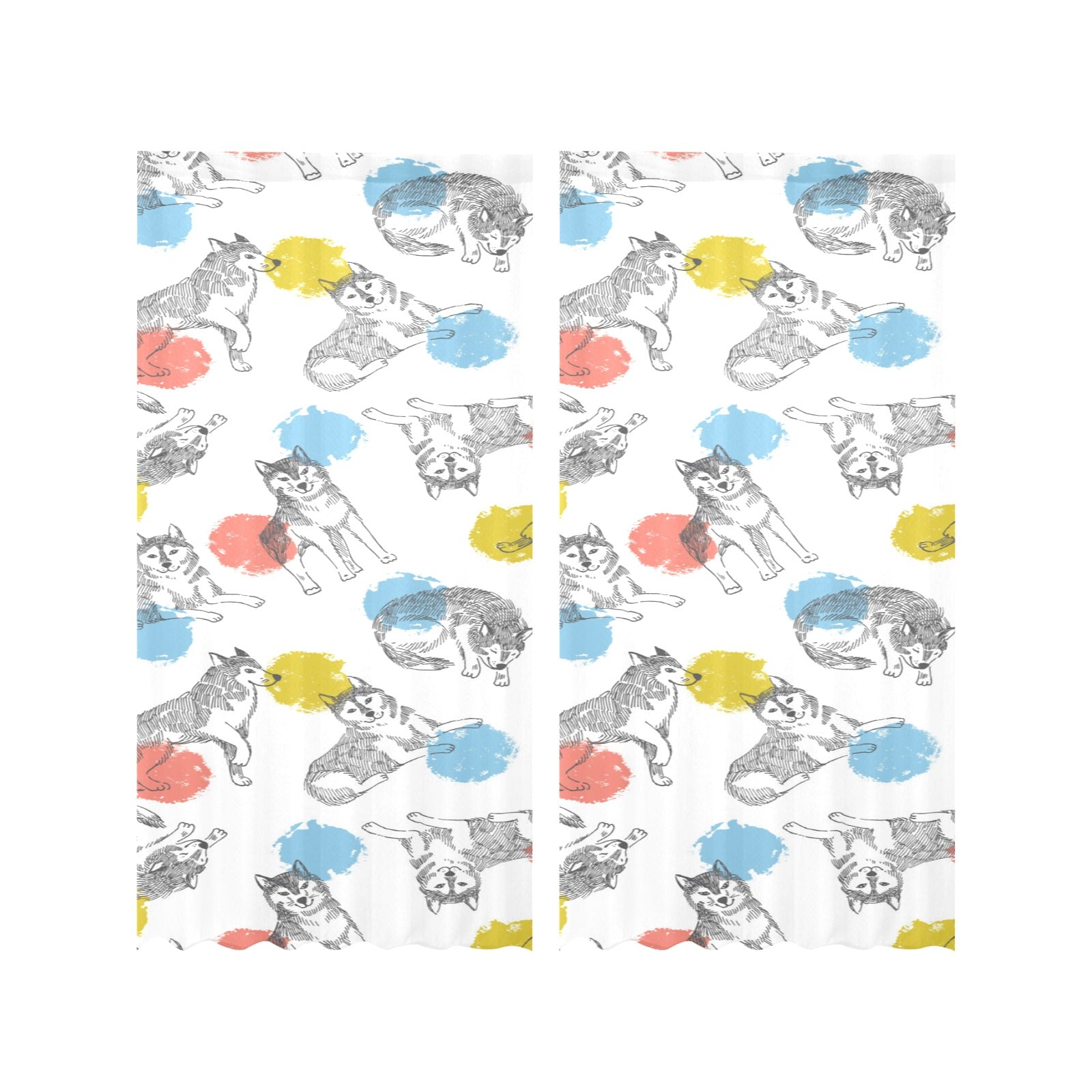 Siberian husky and colorful circle pattern Gauze Curtain