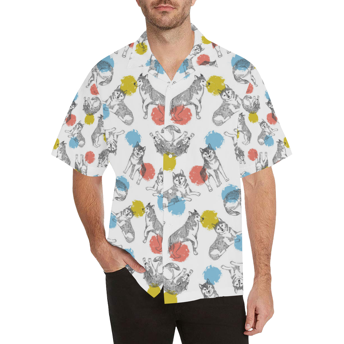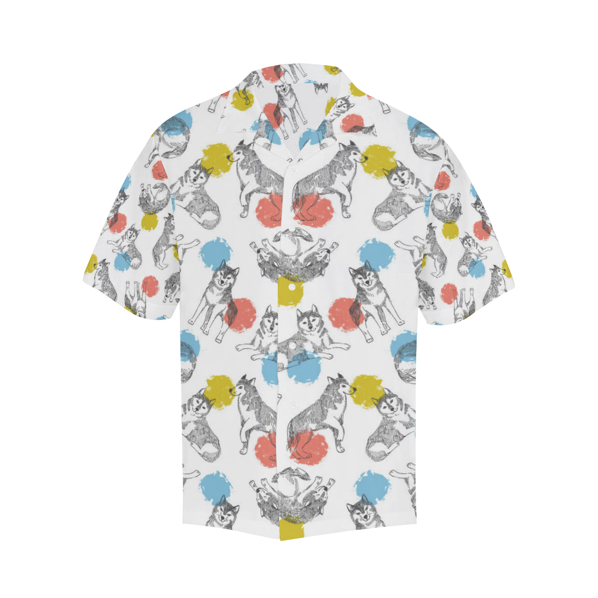 Siberian husky and colorful circle pattern Men's All Over Print Hawaiian Shirt is a uniqued design and limited item. It made to order, hand printed, and sewn with love in our factory.