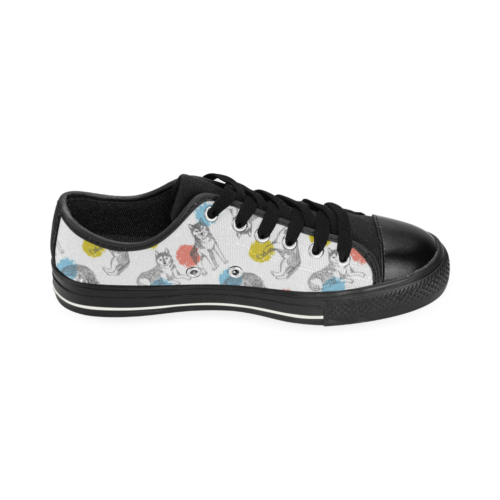 Siberian husky and colorful circle pattern Men's Low Top Canvas Shoes Black