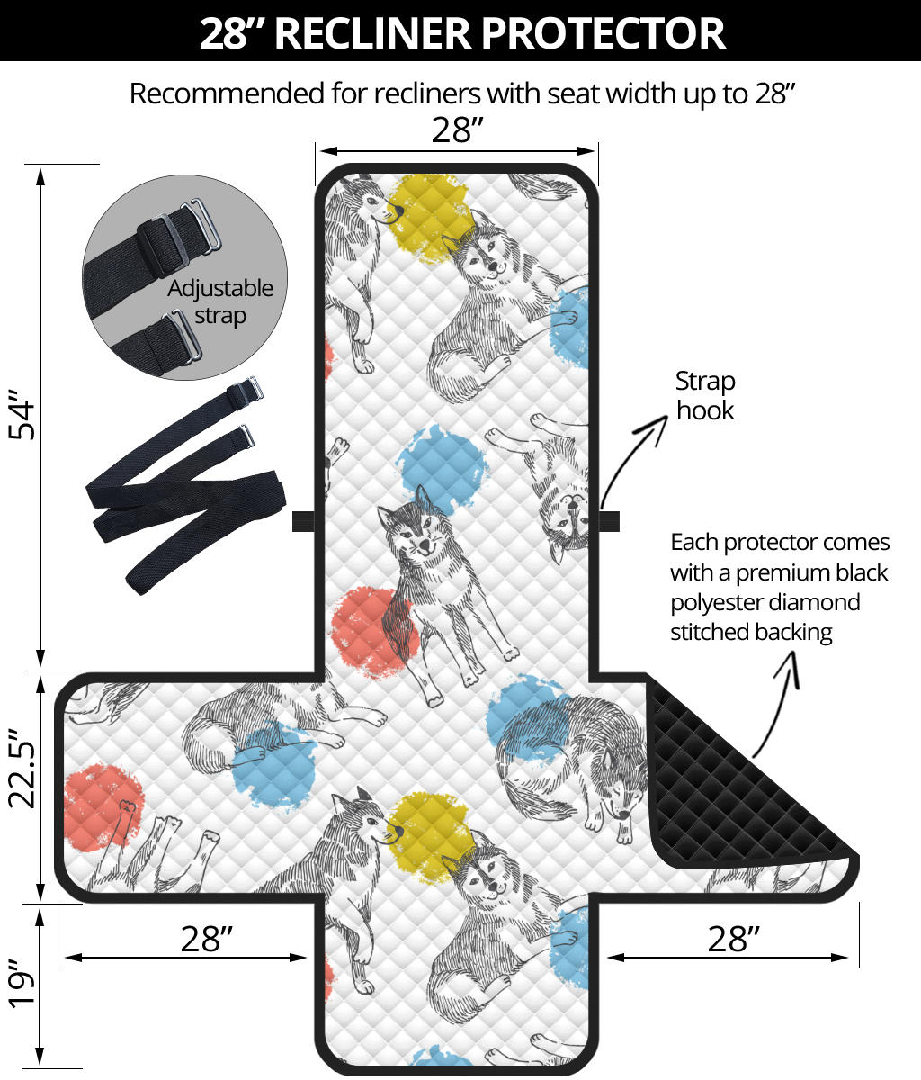 Siberian husky and colorful circle pattern Recliner Cover Protector
