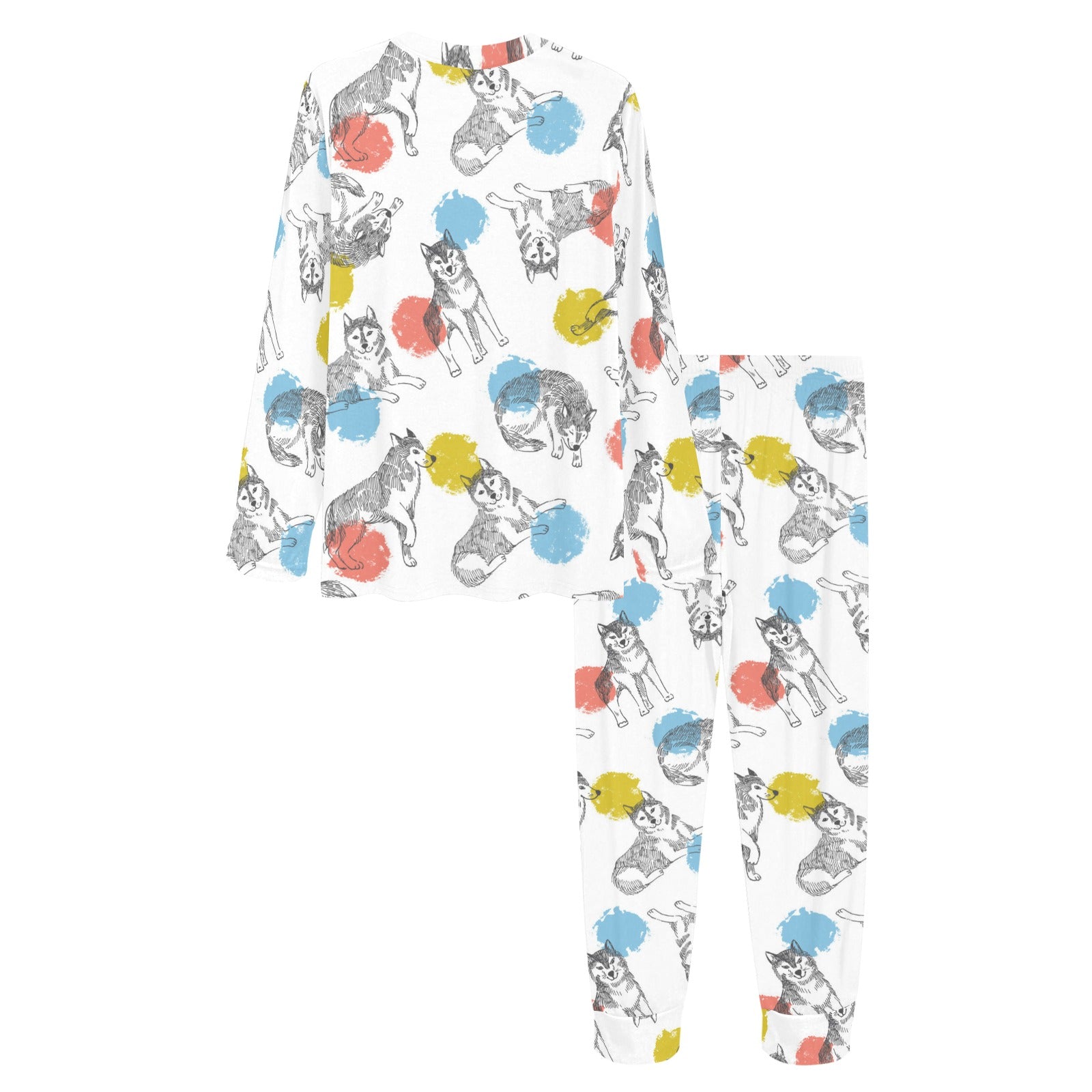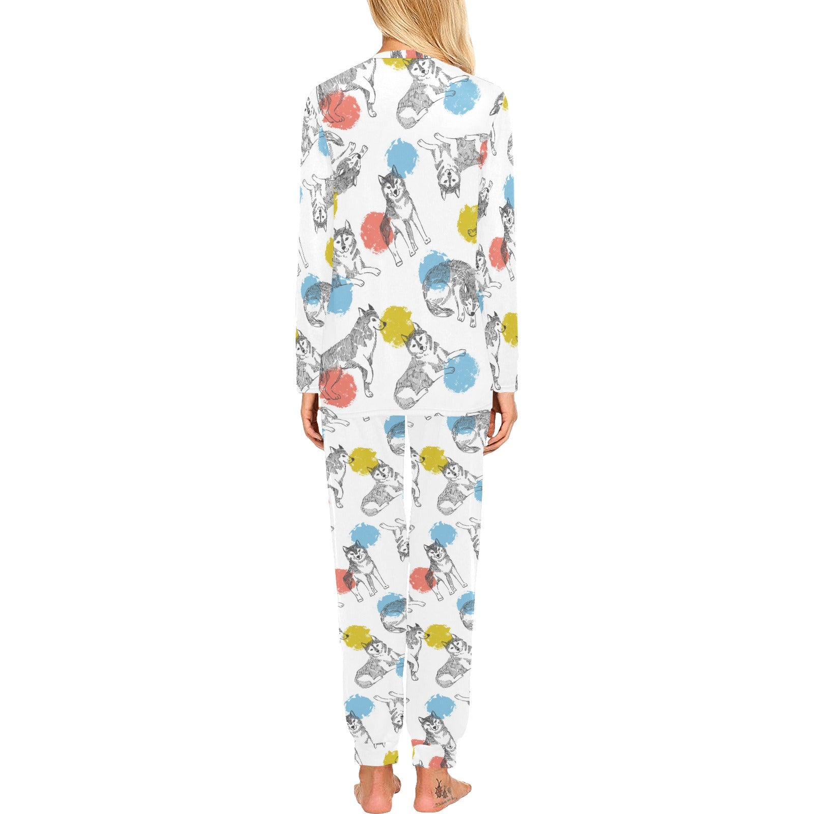 Siberian husky and colorful circle pattern Women's All Over Print Pajama Set