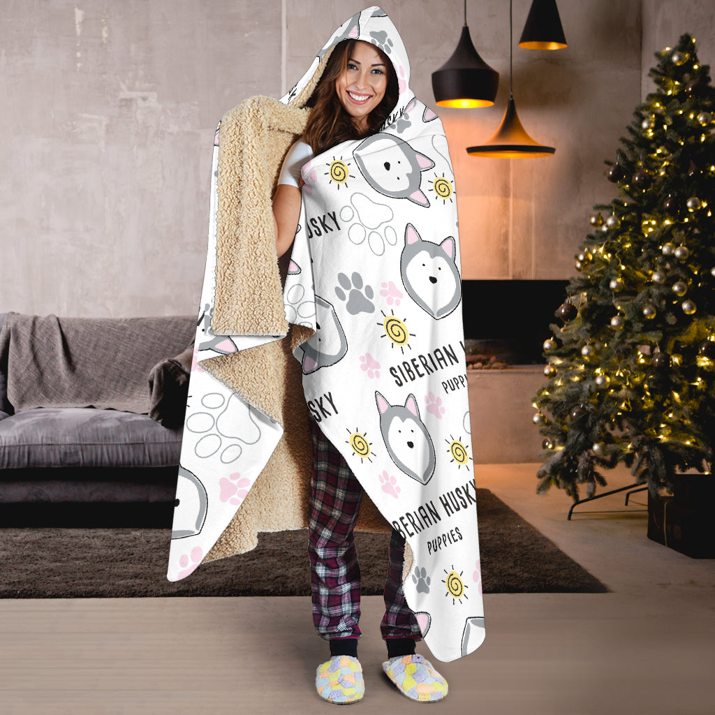 Siberian Husky design pattern Hooded Blanket are custom-made-to-order and handcrafted to the highest quality standards.