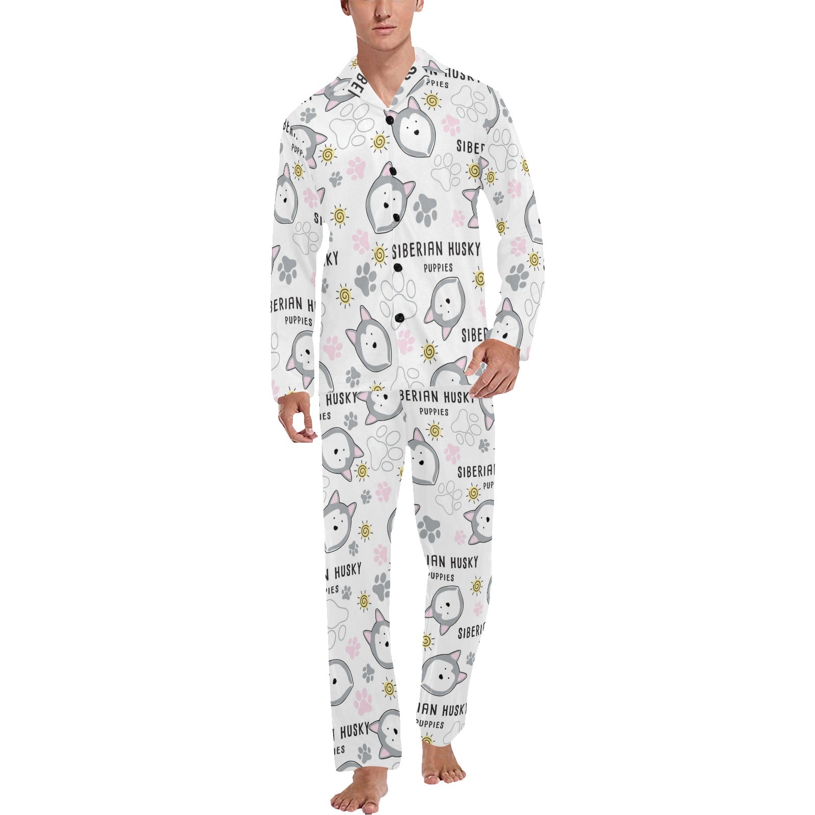 Siberian Husky design pattern Men's Long Pajama Set